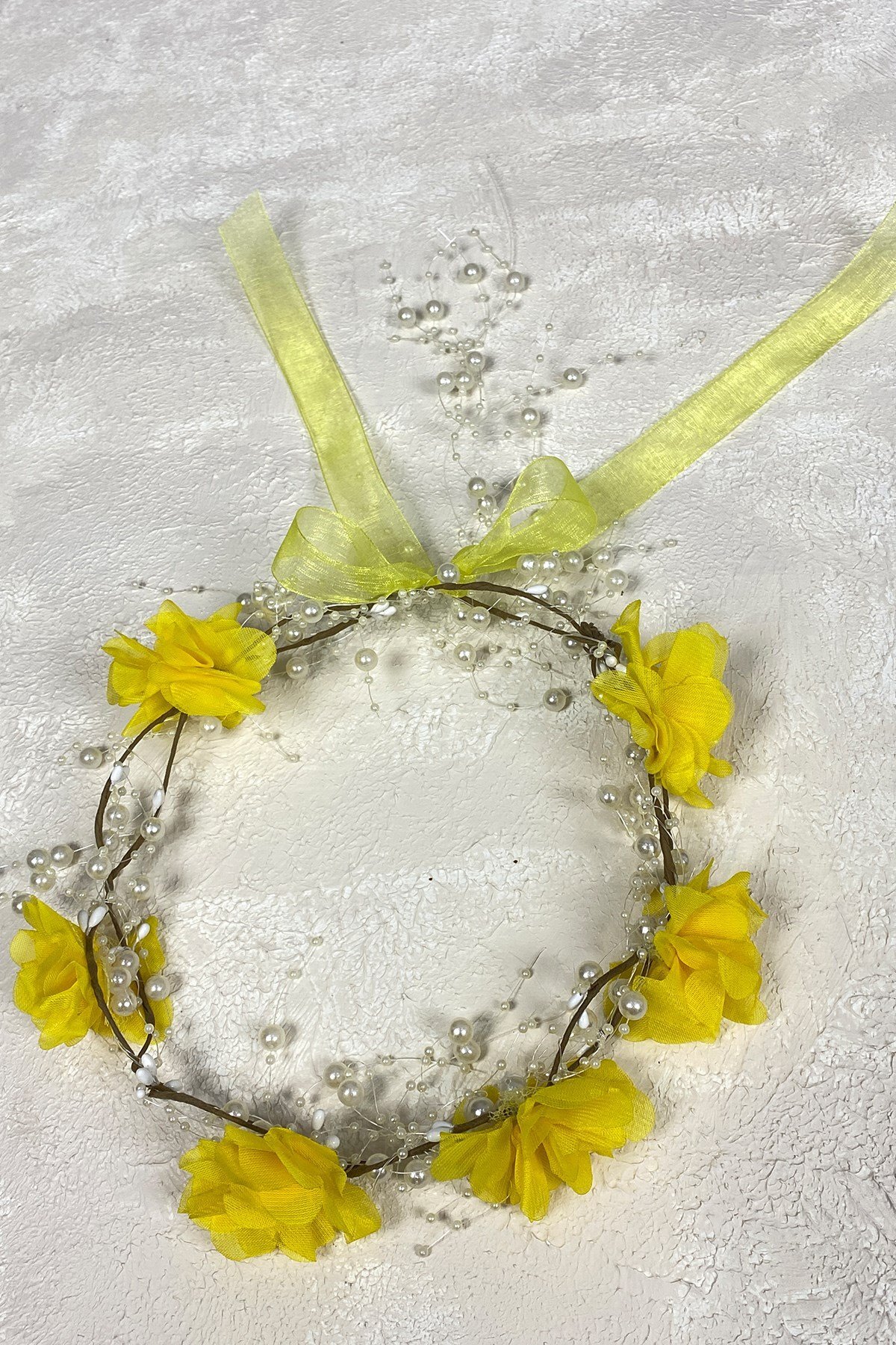 Hayalperest boncuk Yellow Laser Floral Custom Design Bridesmaid Crown | ByTR