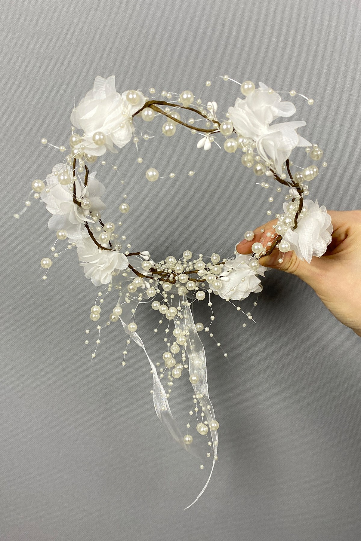 Special design bridesmaid crown with white laser flowers to complement your elegance on your special days, offers an elegant and modern look