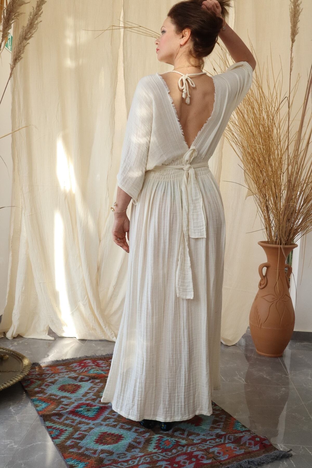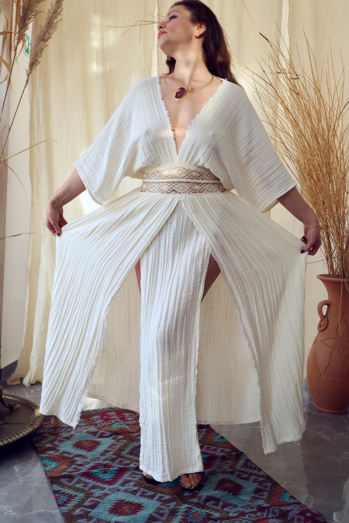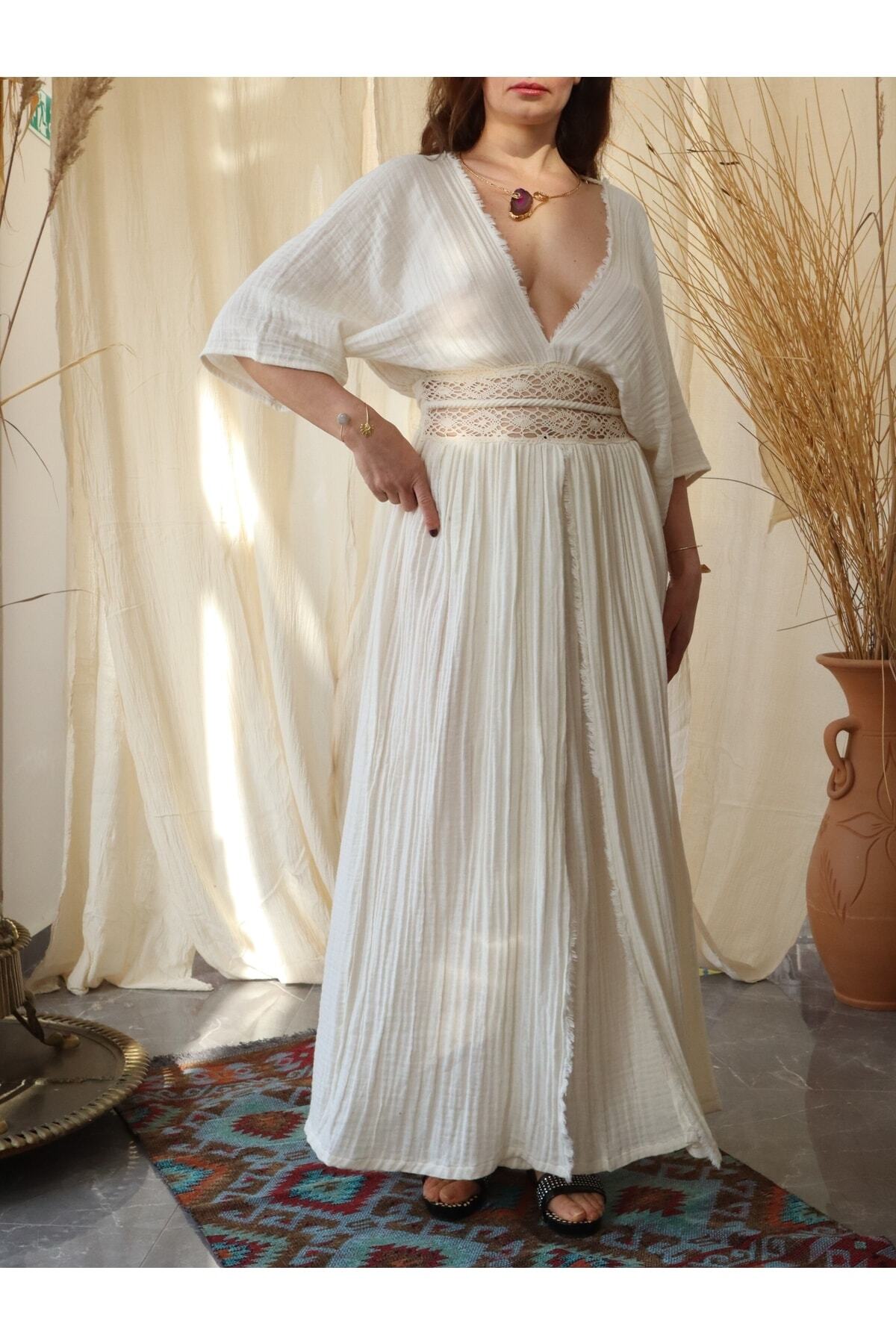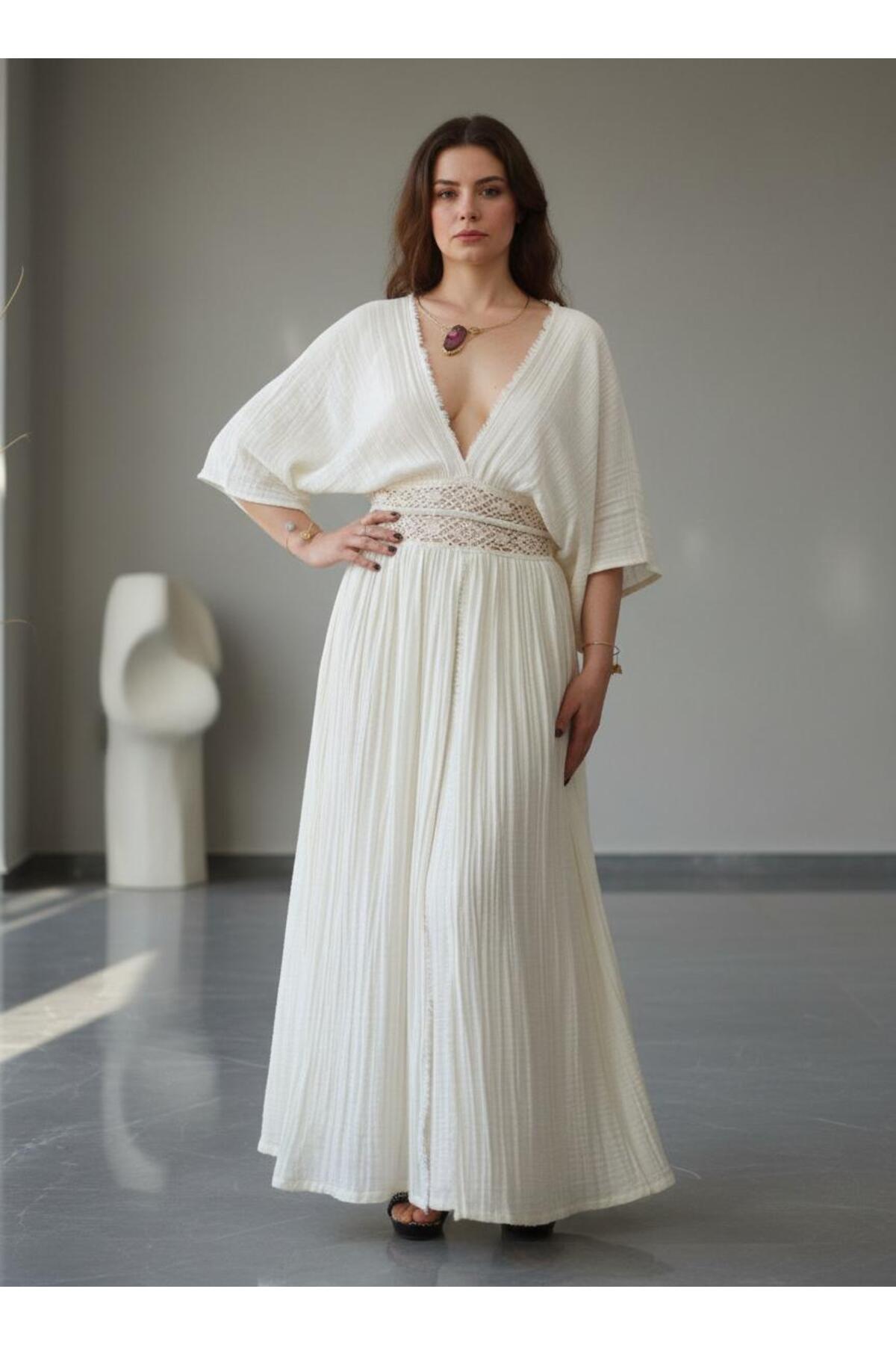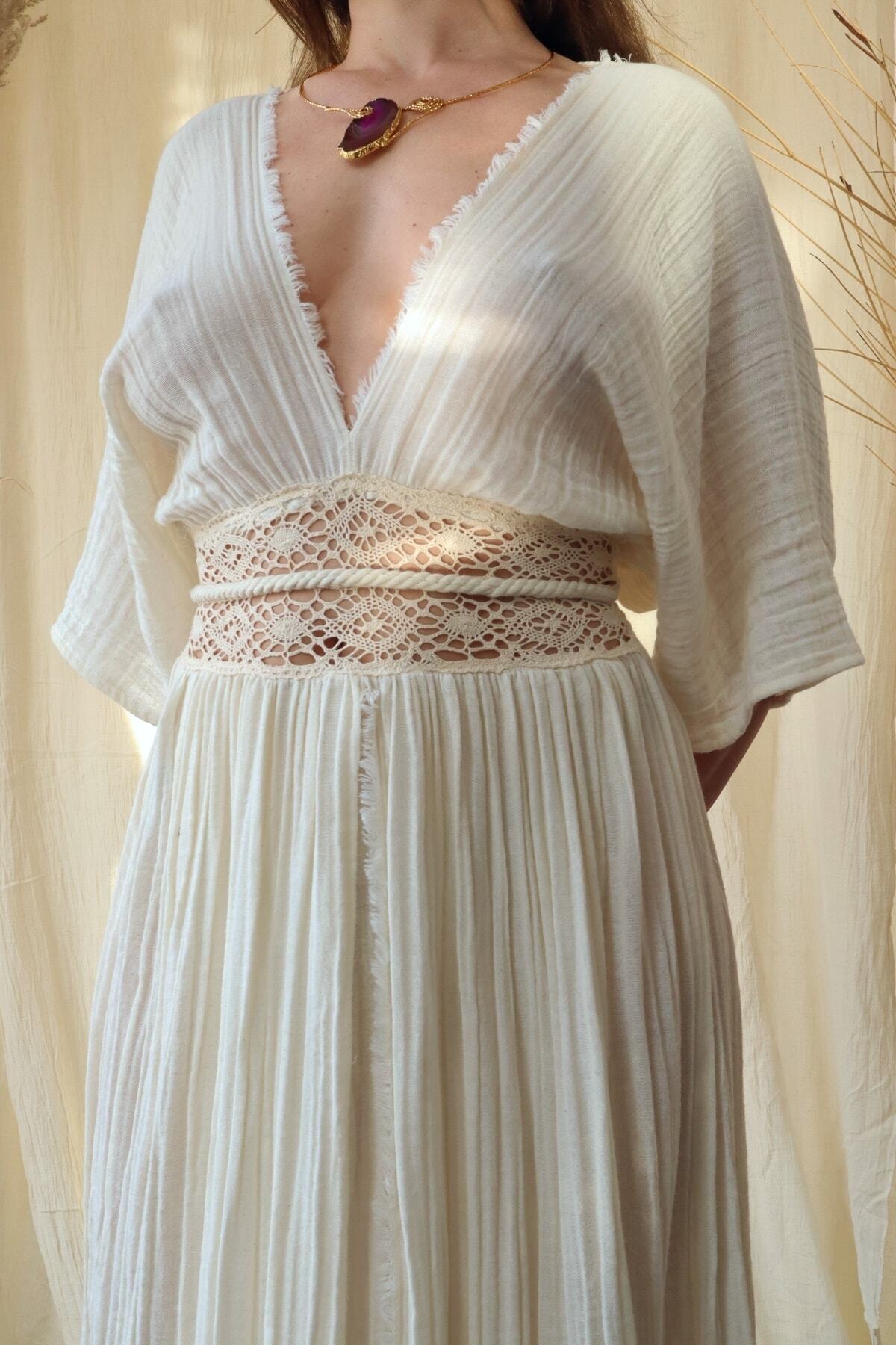 Made of natural muslin fabric, lace waist, over size dress