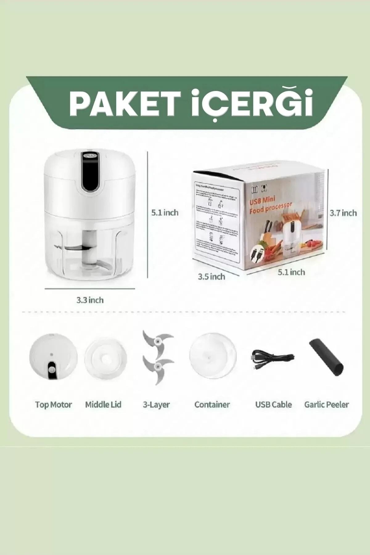 Practical Mini Handheld Rondo with Rechargeable 3 Blades 250 ml Electric- Rechargeable Crusher: allows you to say goodbye to manual towing, just press the button on the top to break it automatically.