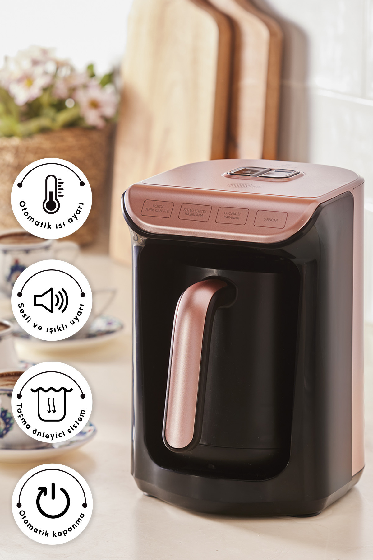 Hatır KÖR, which can make 5 cups of Turkish Coffee or Turkish Coffee in Roast at once, brews coffee at the right temperature, ideal consistency and just in time with automatic heat setting.