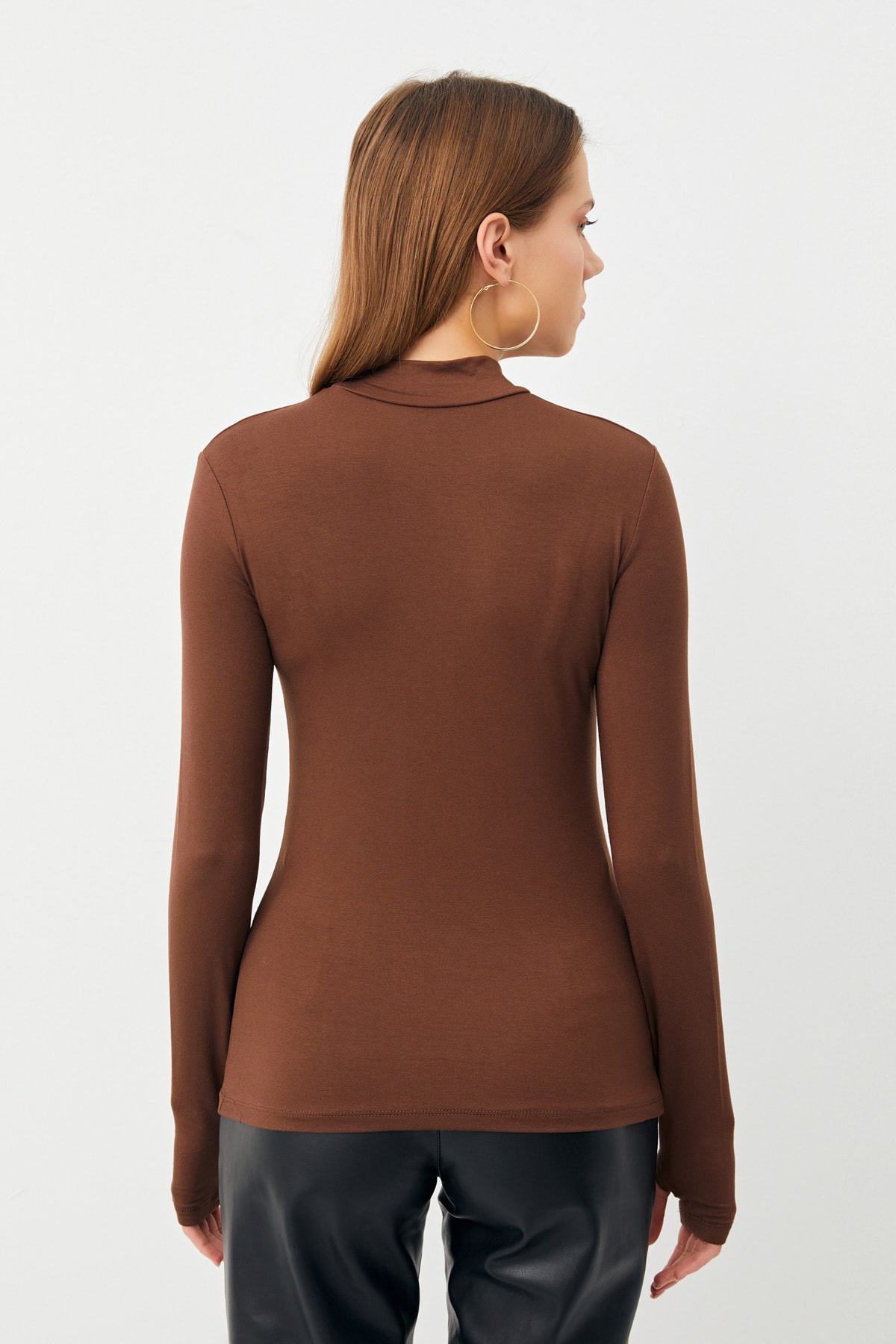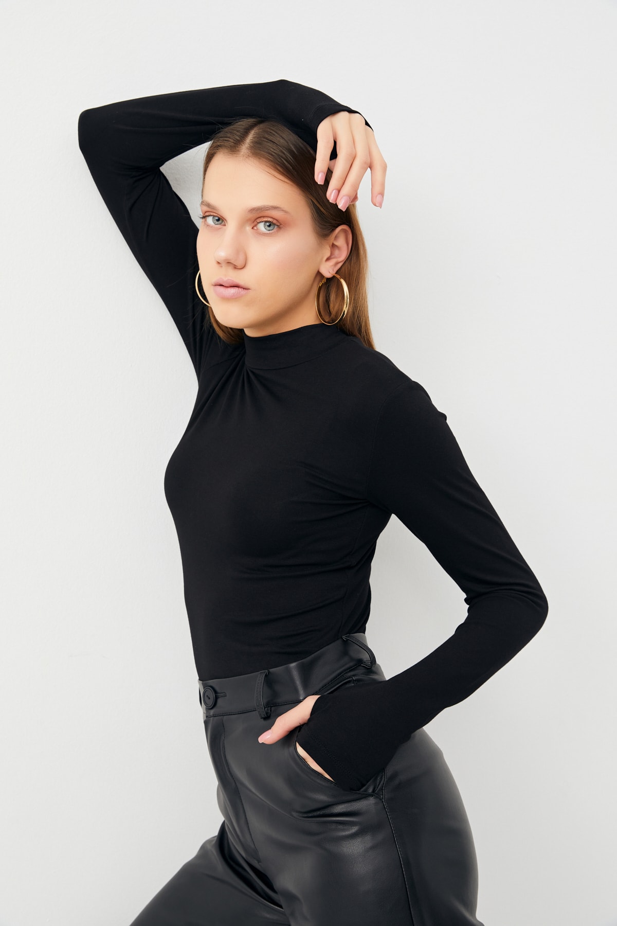 While giving a modern and elegant look with its semi-turtleneck detail, it can be easily preferred in seasonal transitions thanks to its long sleeves