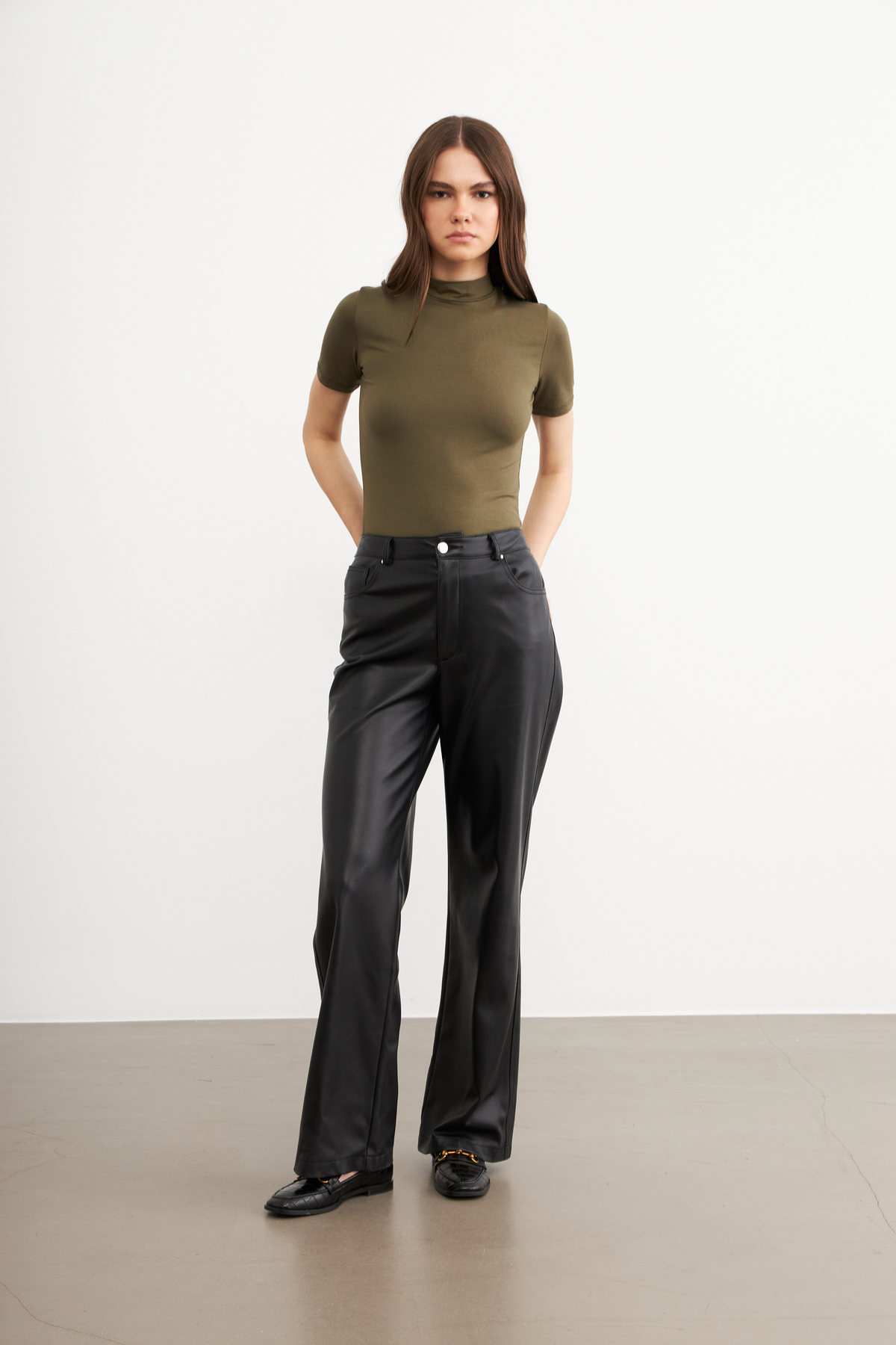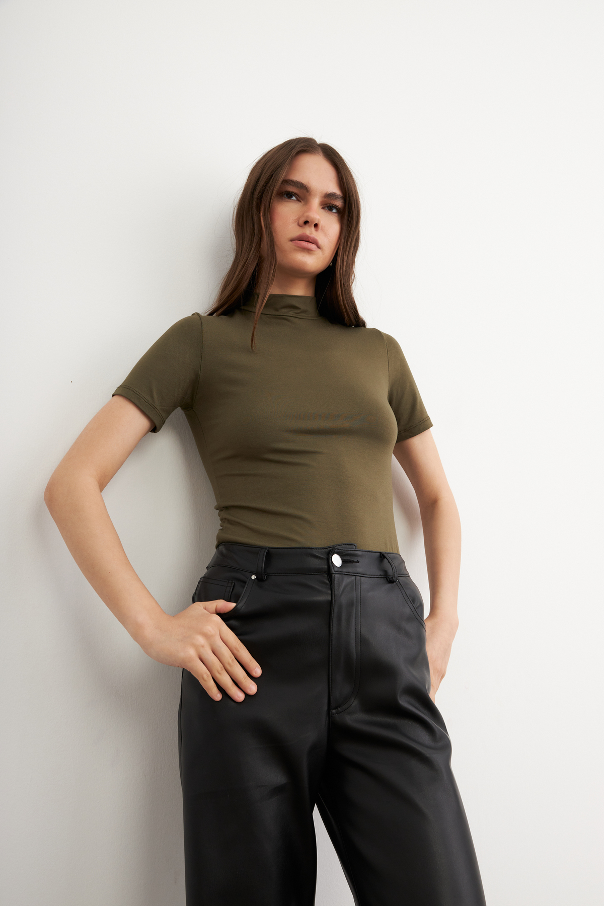 Gently wraps your neck while creating a modern and elegant style with its turtleneck detail