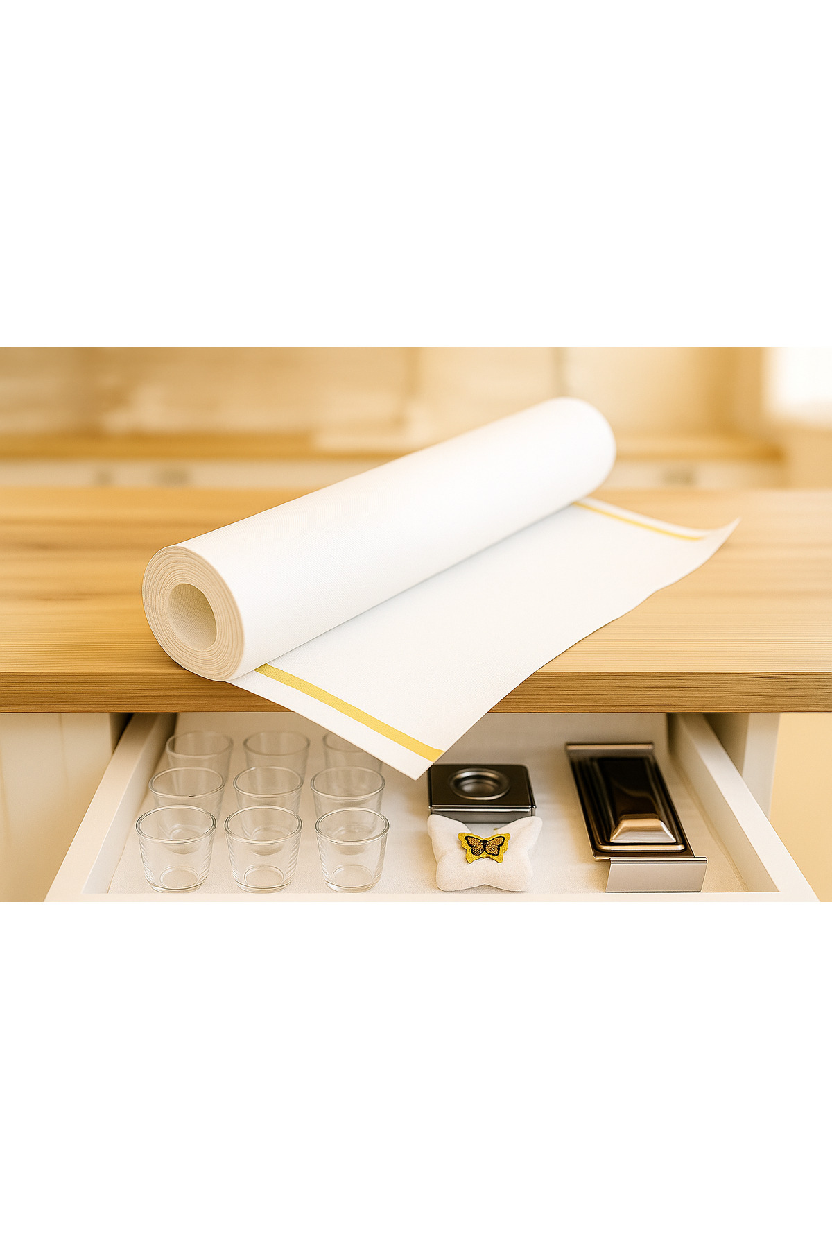 Drawer cover - ShelfMat self-adhesive strips, which you can use as a shelf organizer, allow you to stick to any shelf, cabinet or drawer and use it for a long time without slipping.