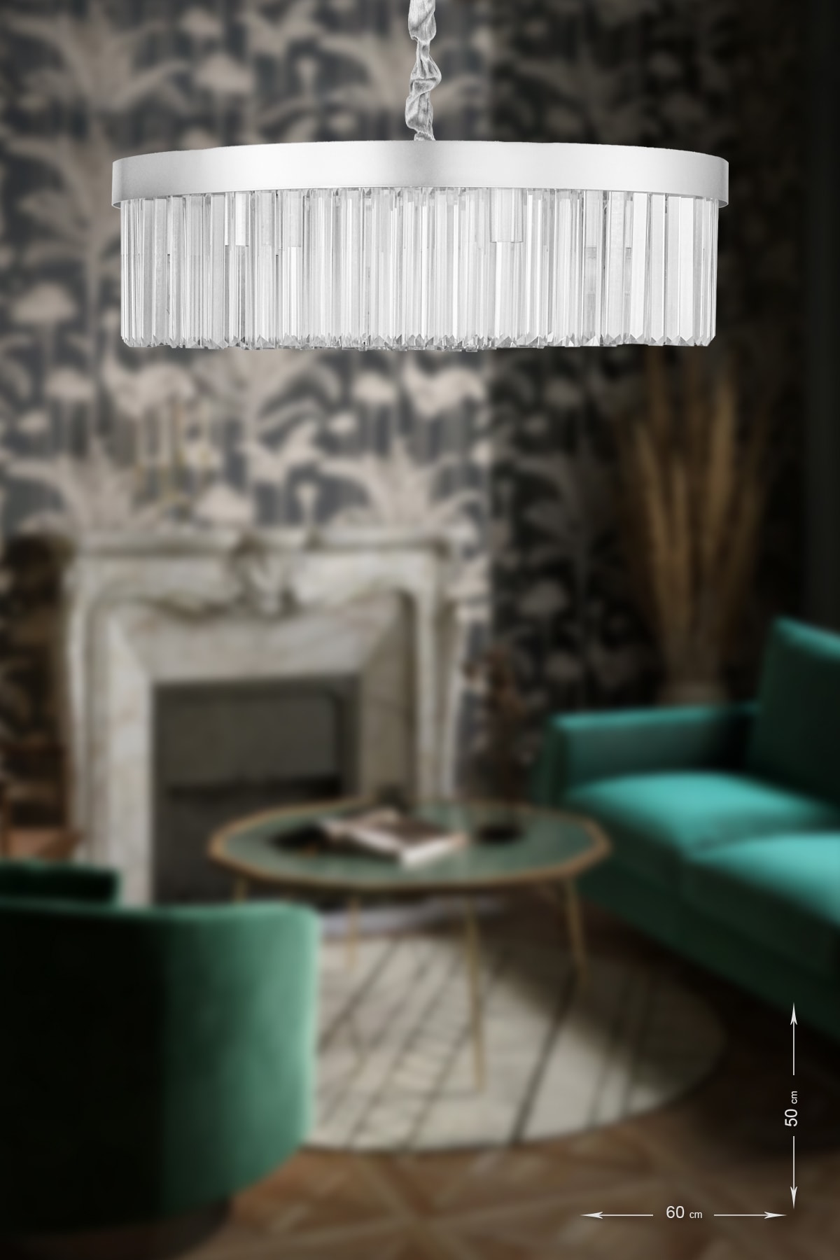 Additional Information: 15 cm long crystal glass stone is used on the chandelier