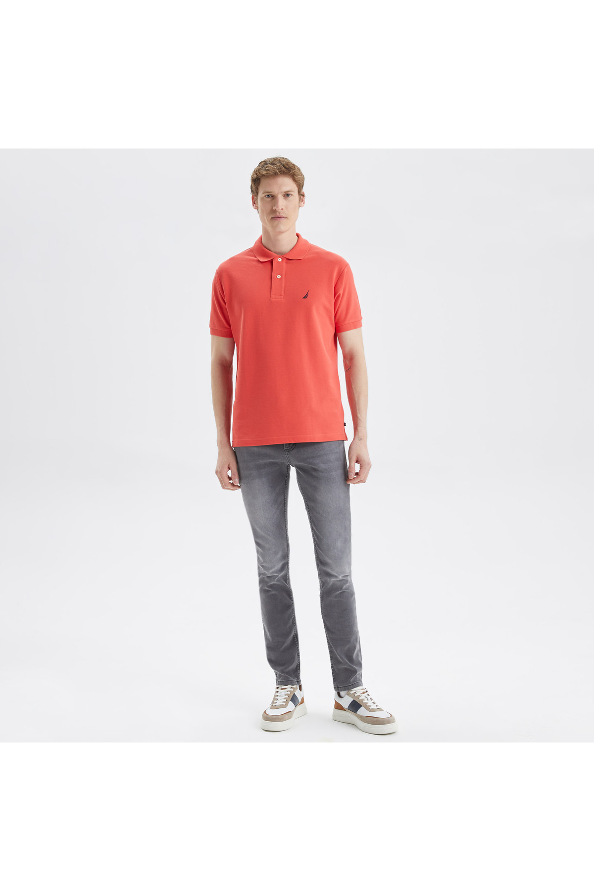 Nautica Men's Orange Classic Fit Short Sleeve Polo Neck T-Shirt | ByTR