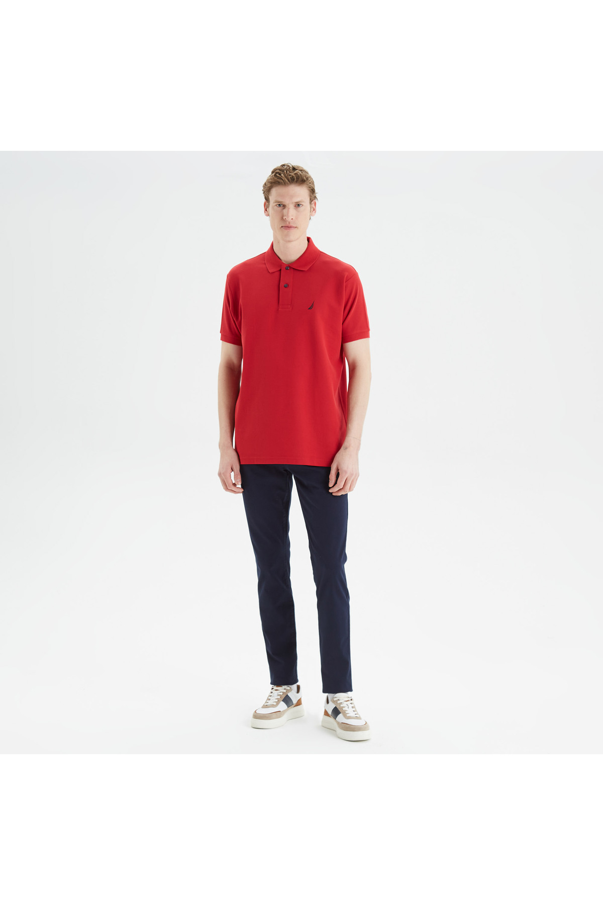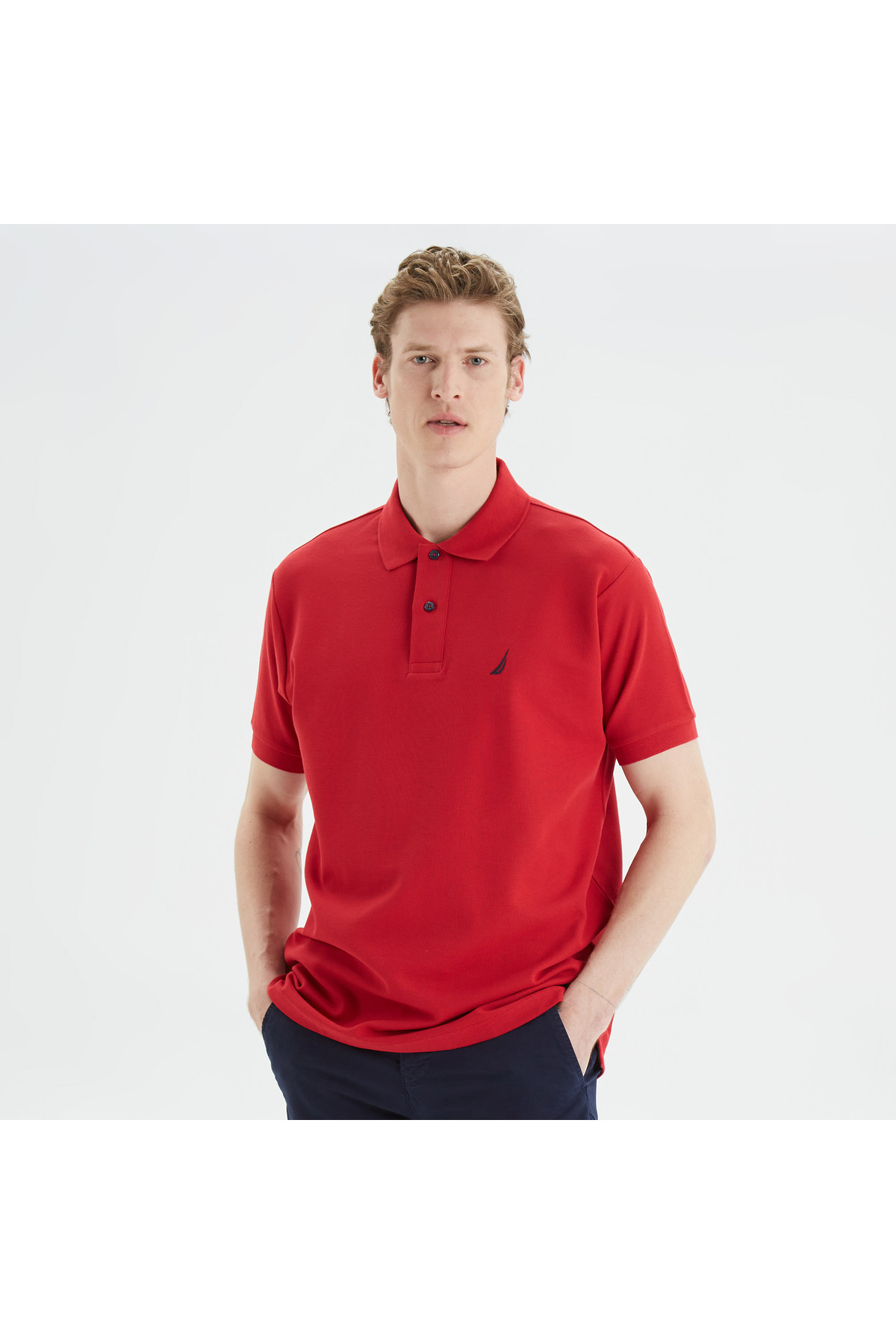 Nautica Men's Red Classic Fit Short Sleeve Polo Neck T-Shirt | ByTR