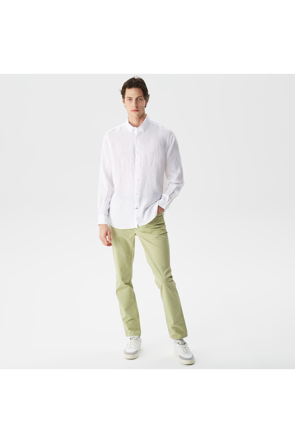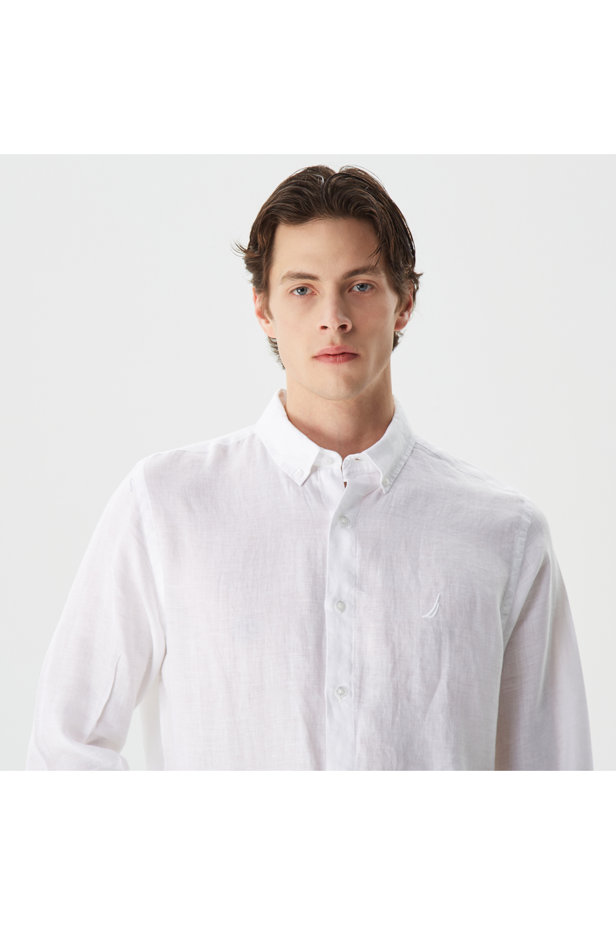Nautica Men's White Classic Fit Long Sleeve Linen Shirt | ByTR