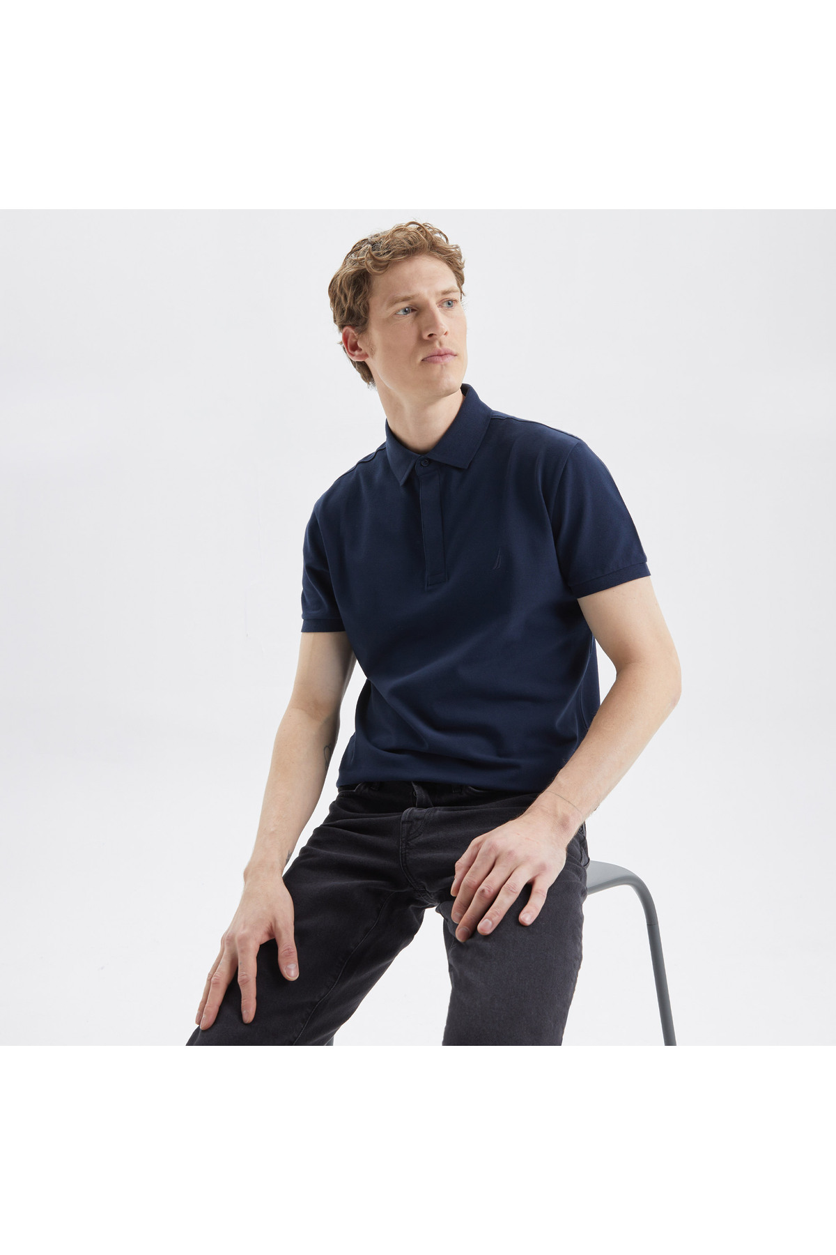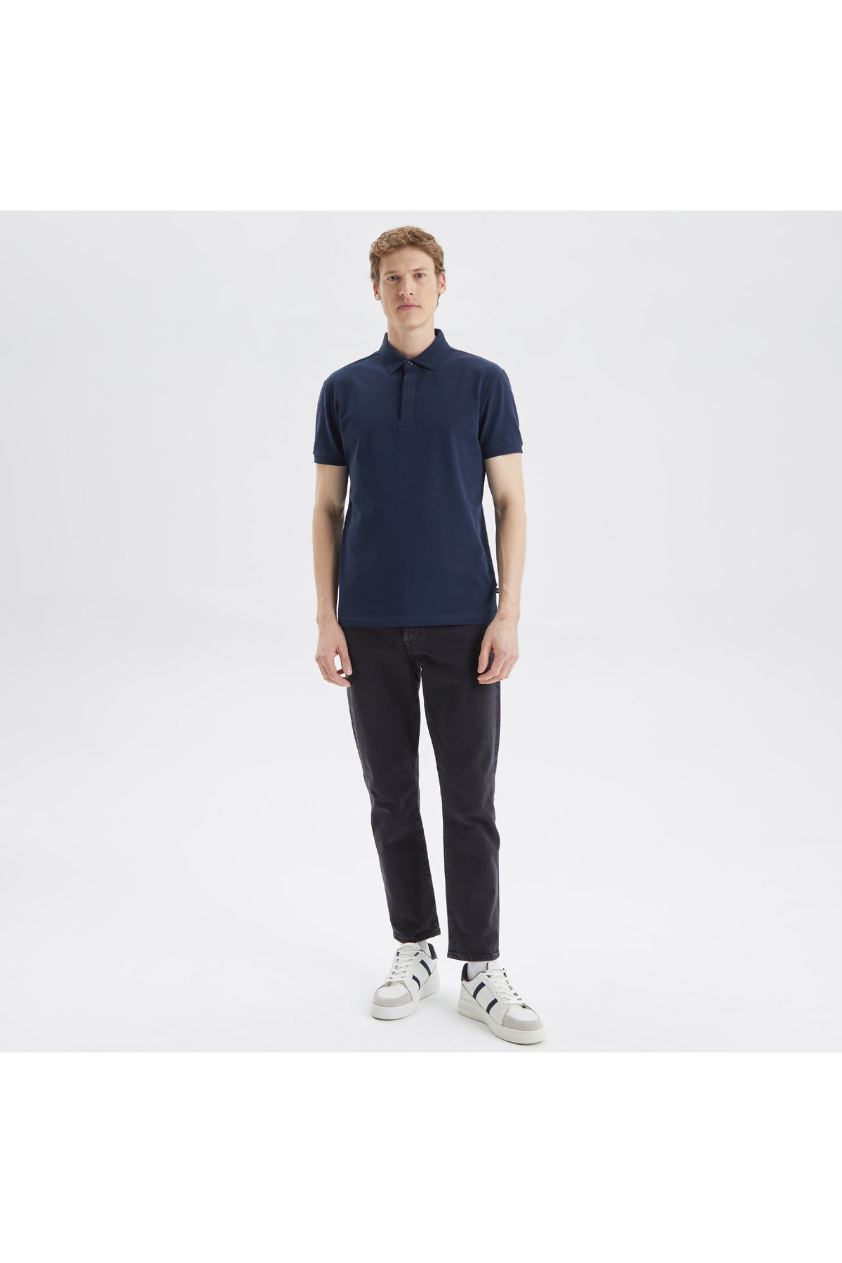 Navy blue polo collar offering a classic and timeless style