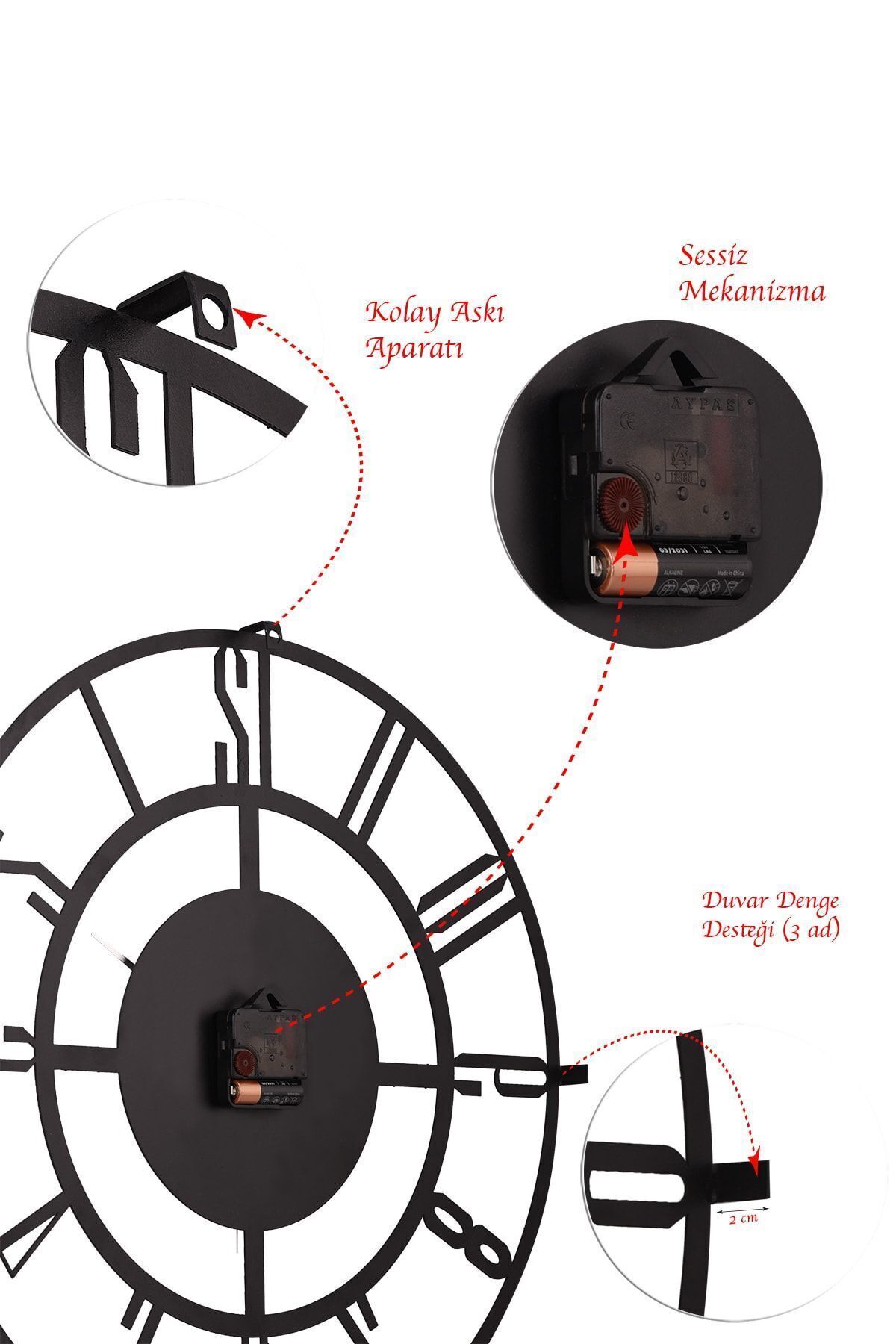 Usage Area: This metal wall clock is ideal for indoor use.