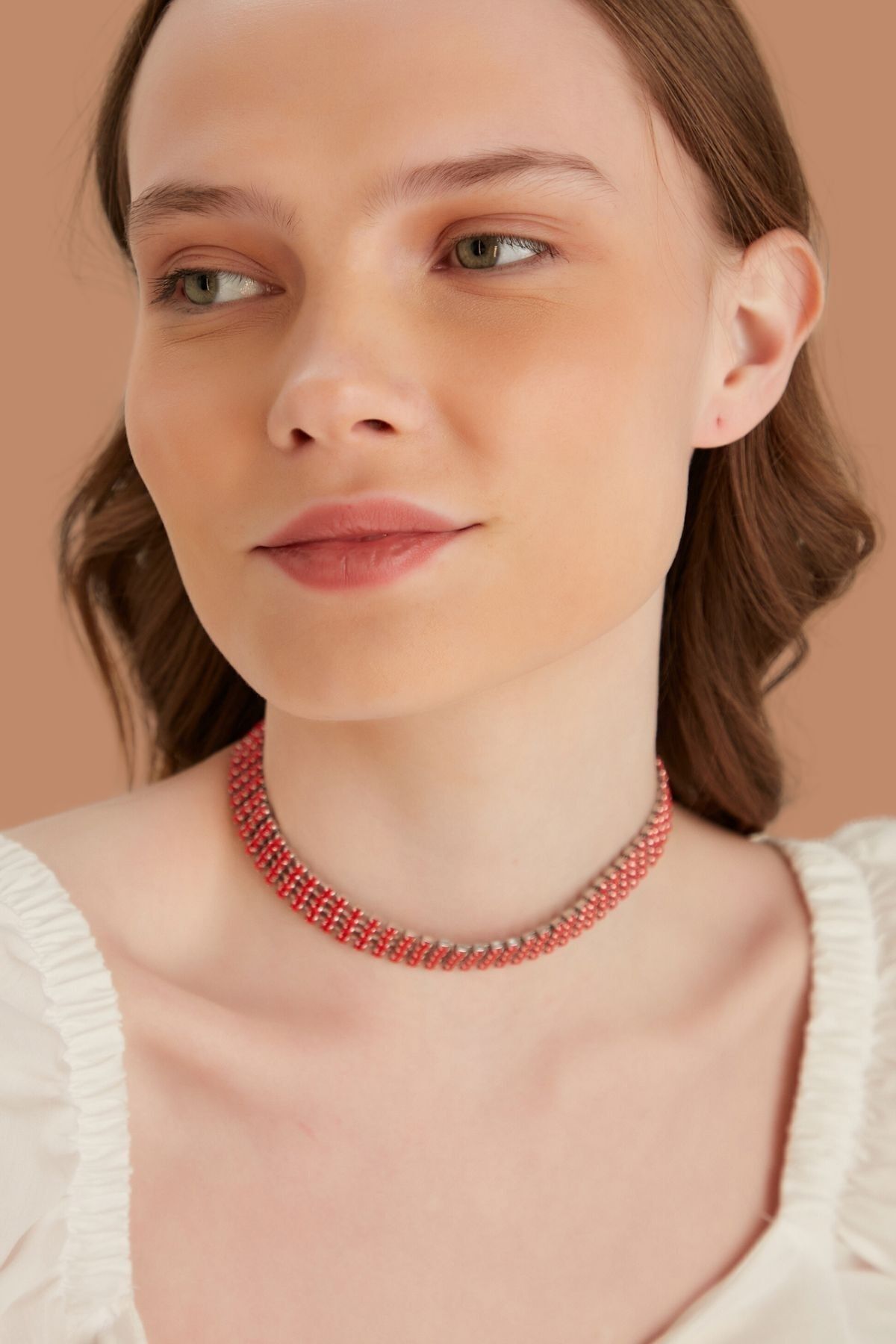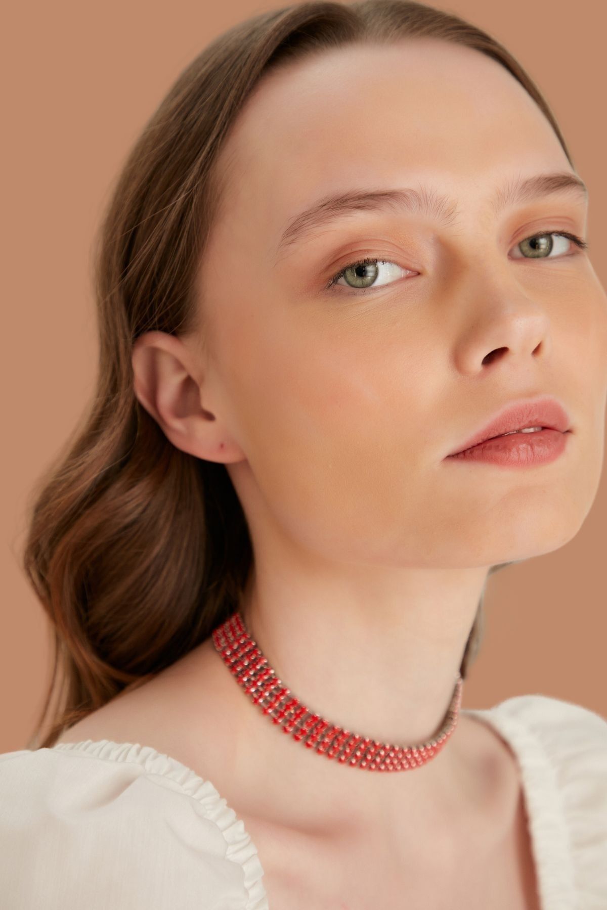 Women's Magia Model Crystal Zircon Gemstone Red Evening Dress Choker Wedding Party Henna Dress Casual Necklace | Product Description Video Features Photos