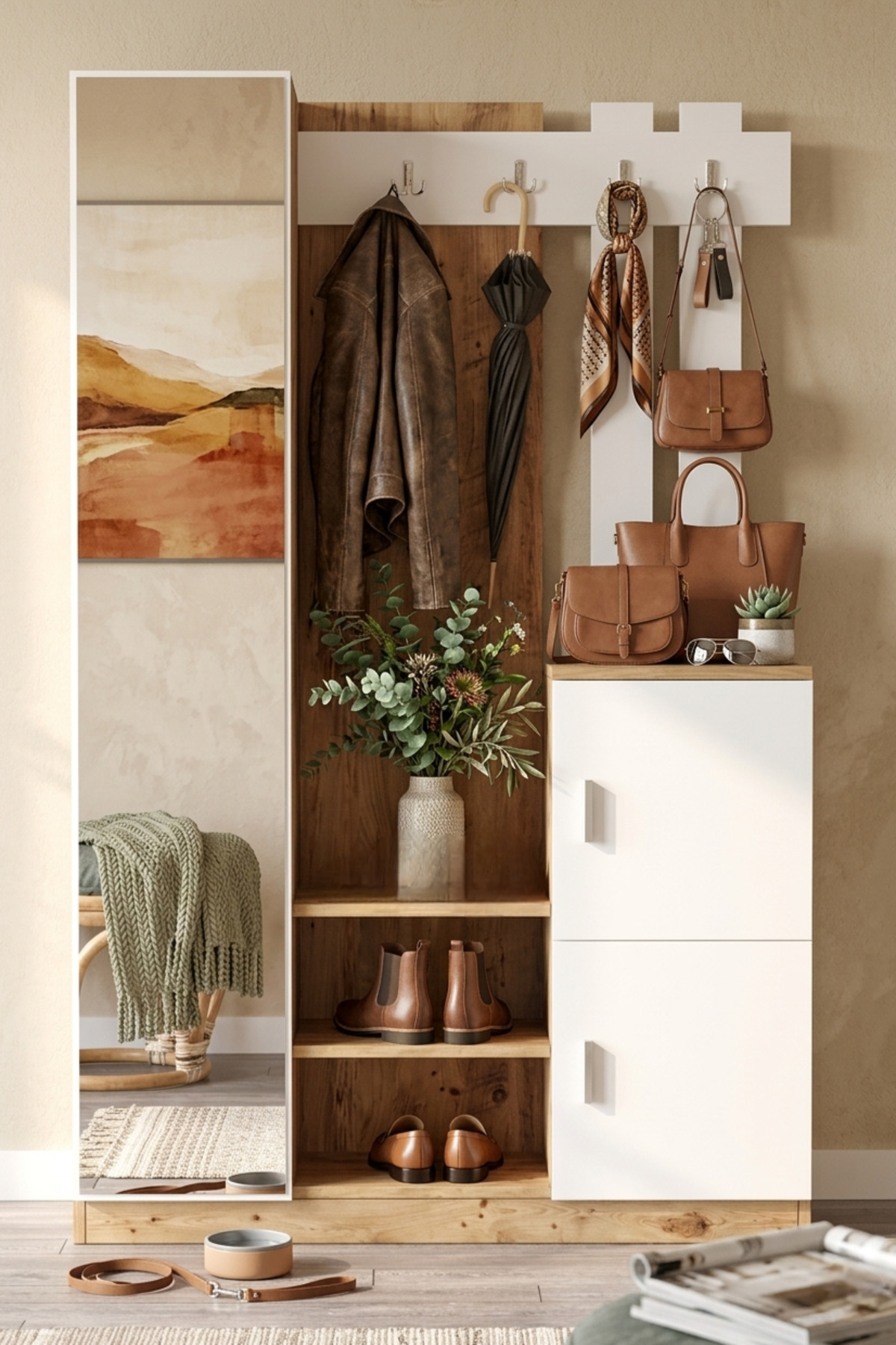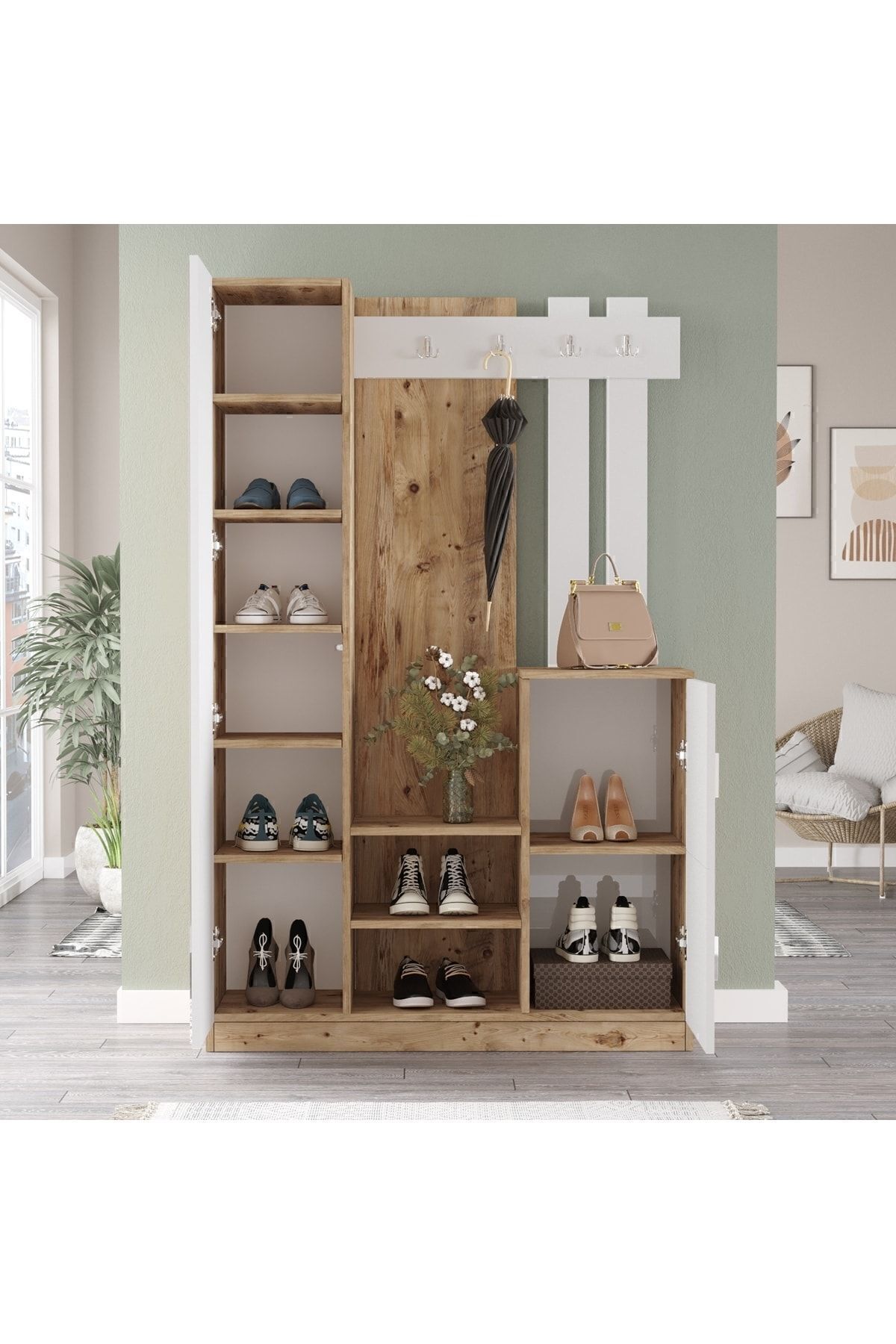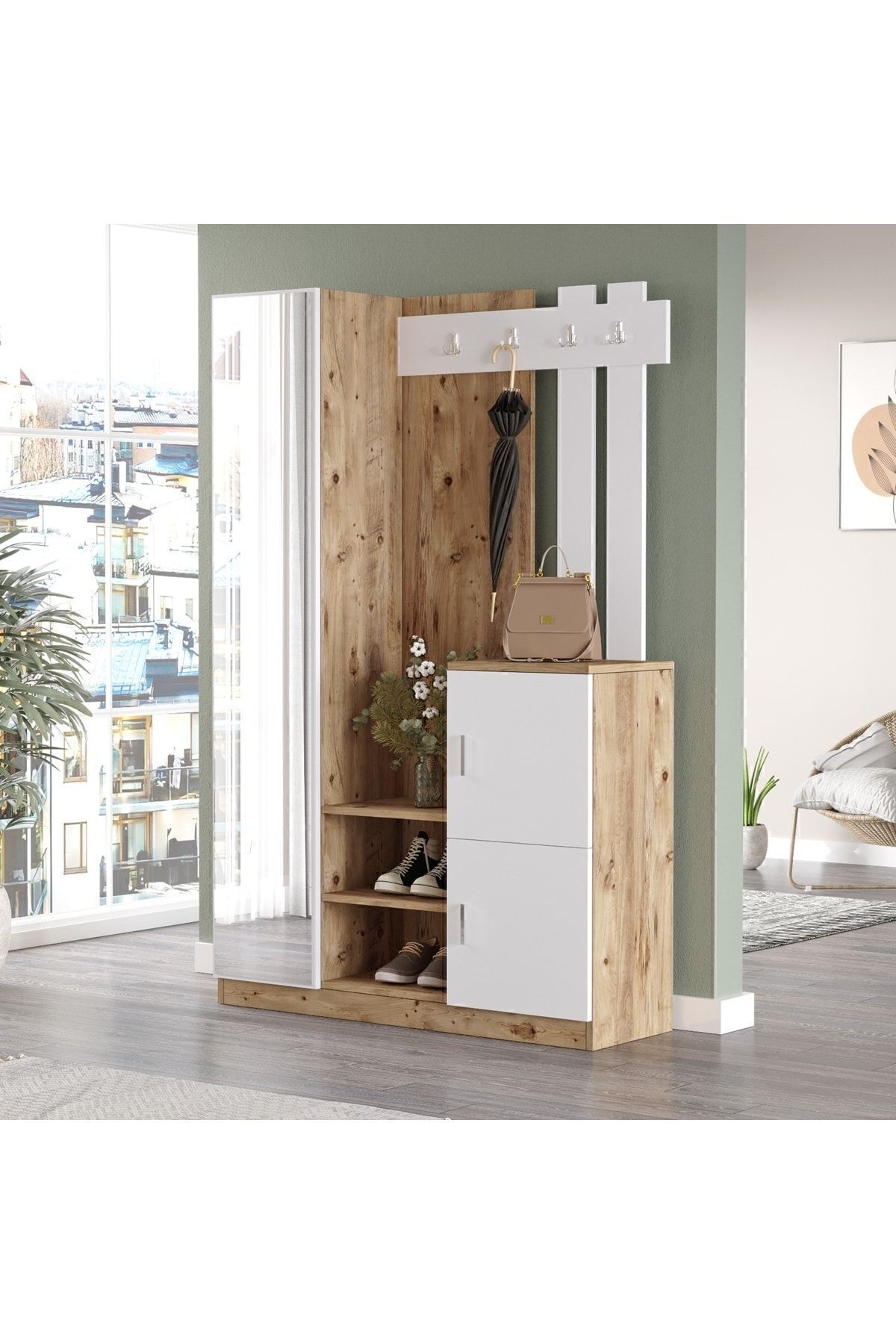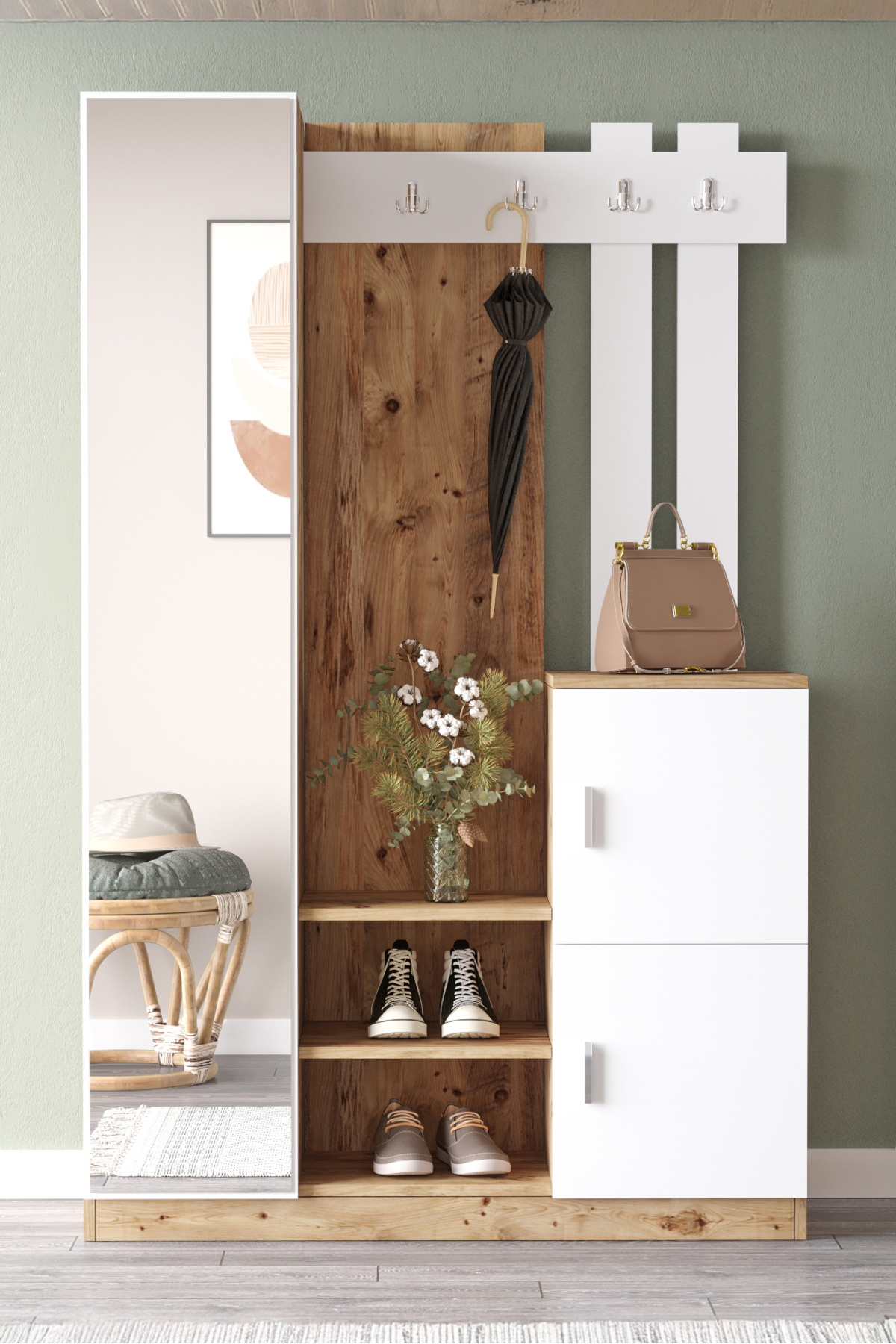 Yurudesign Roger Cloakroom Coat Rack Shoe Holder Pine-White Color : Atlantic Pine-White