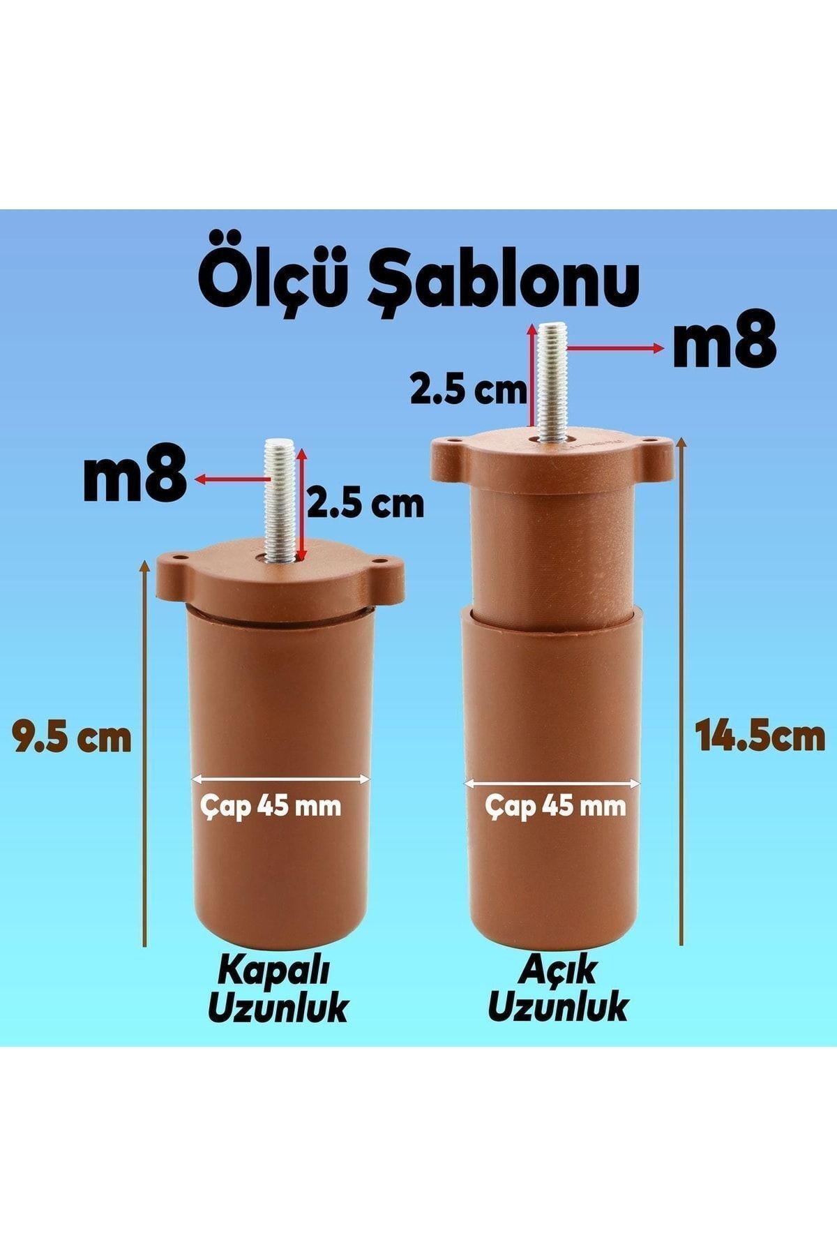 4 Medium Support Feet Brown (adjustable from 9.5 cm to 14.5 cm. m8 bolted )