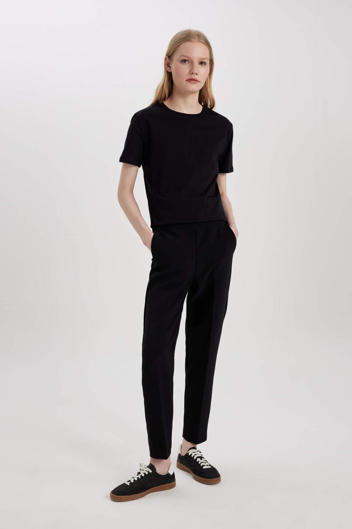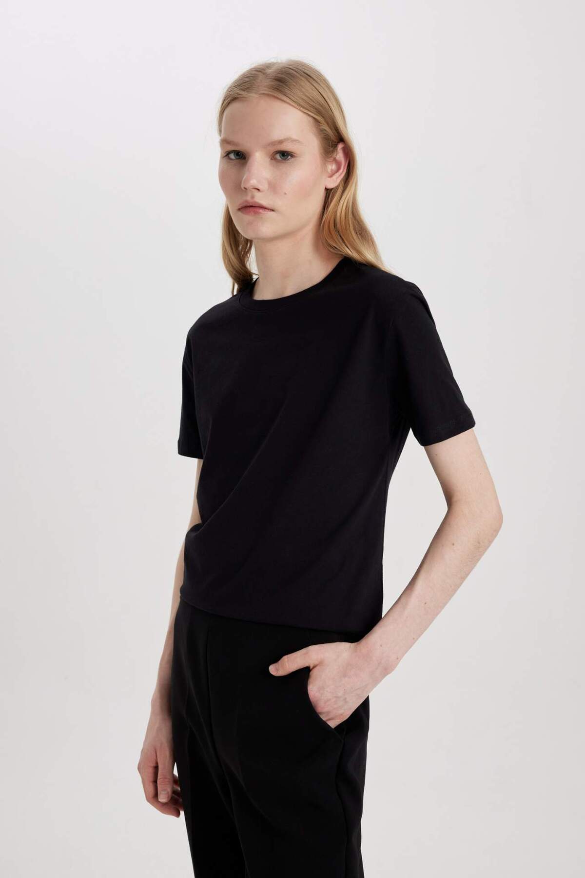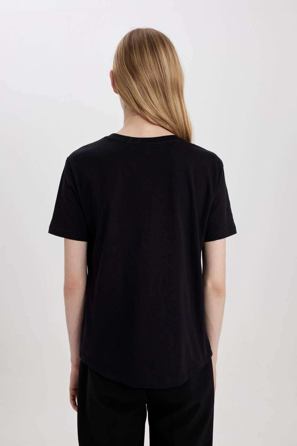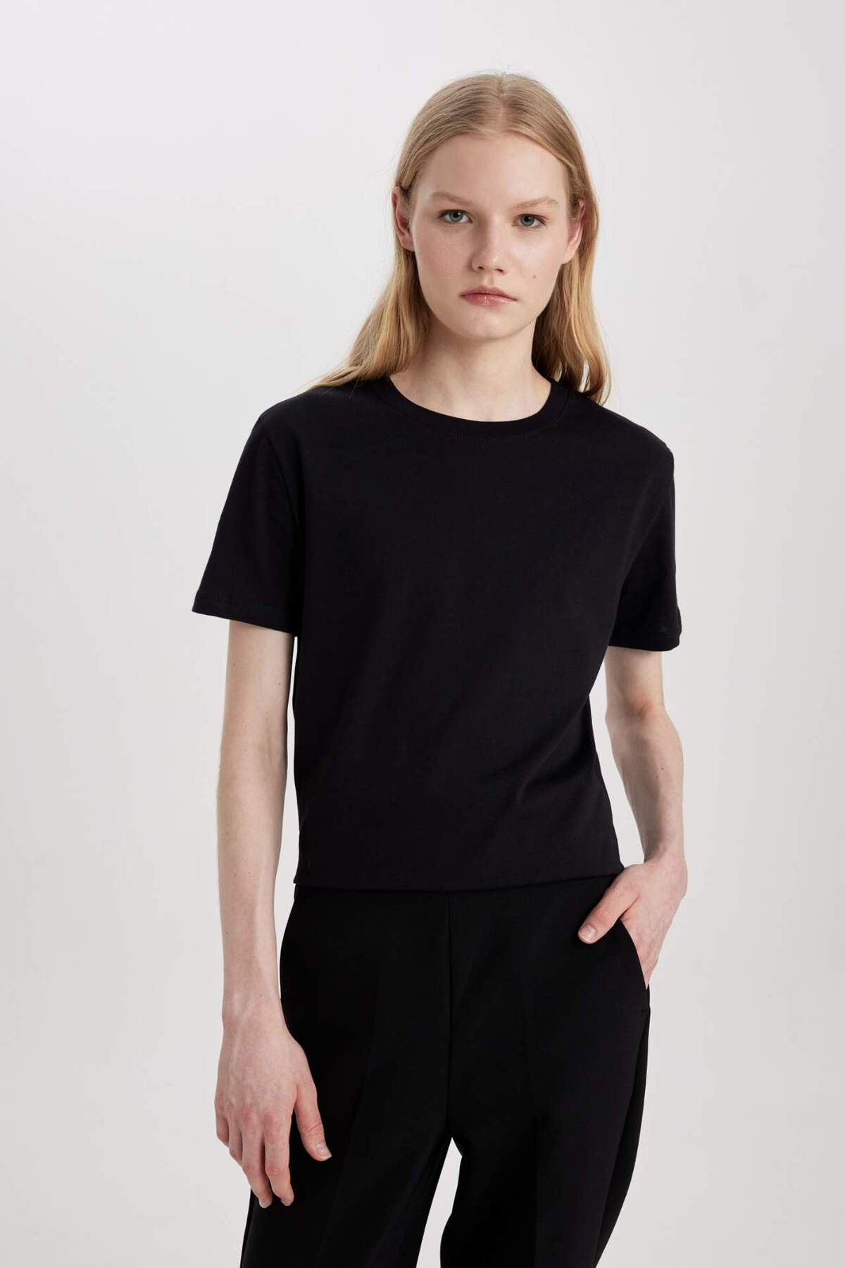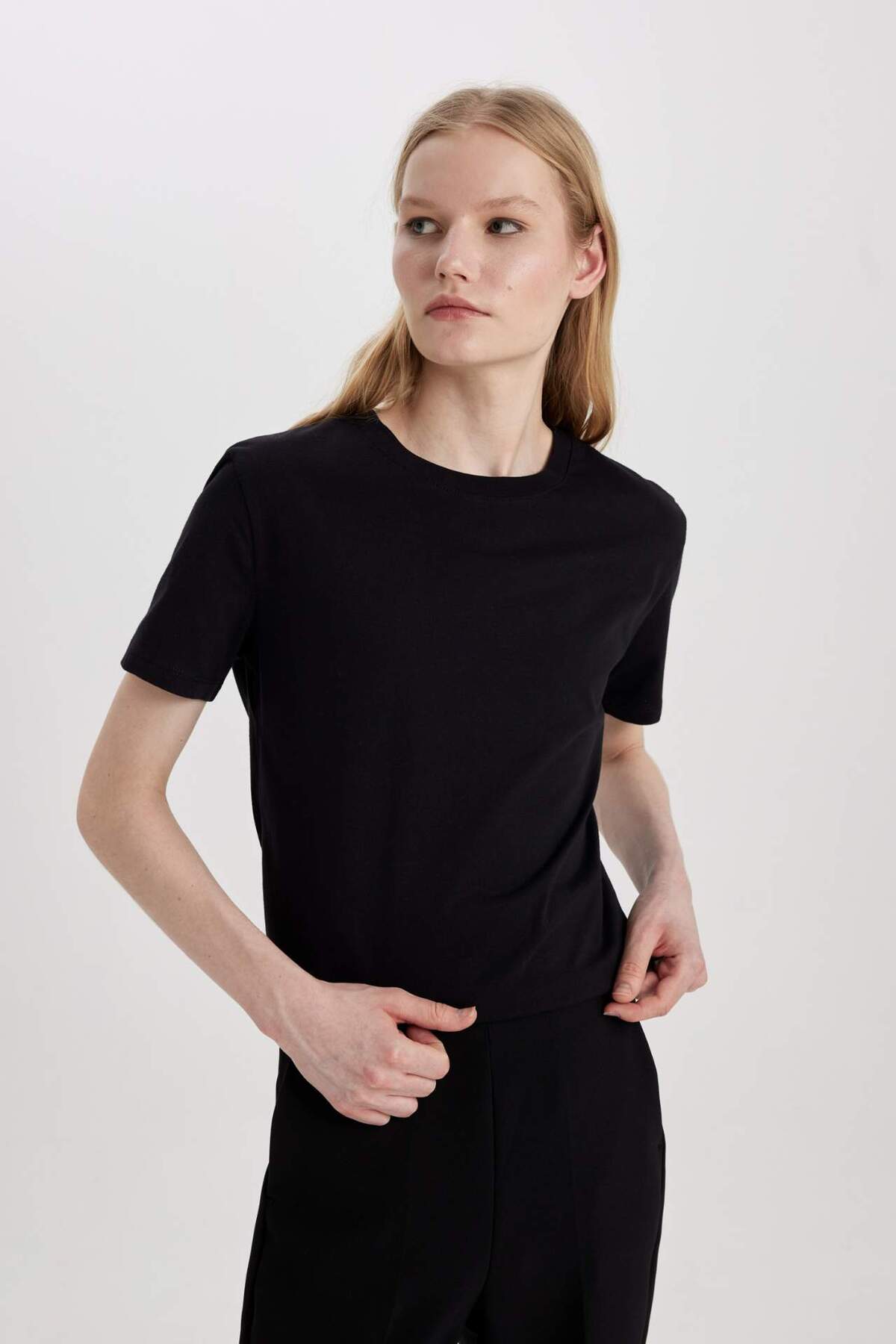 DeFacto Women's Regular Fit Crew Neck Short Sleeve T-Shirt, which you can easily use with your tights and pants with its cotton fabric, bicycle collar, short sleeve tunic model and comfortable fit.