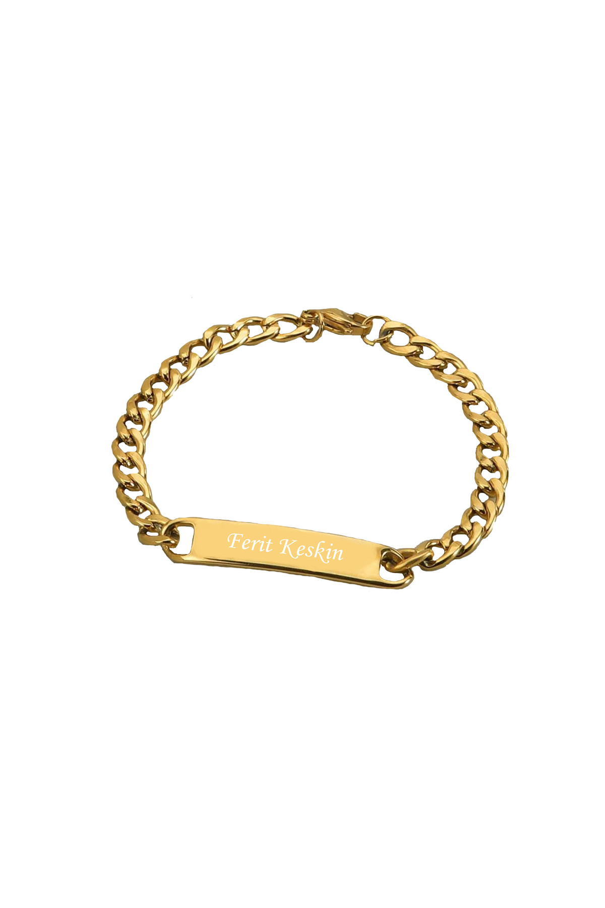 Stainless steel chain dog tag bracelet decorated with natural stone details, offering elegance and naturalness together