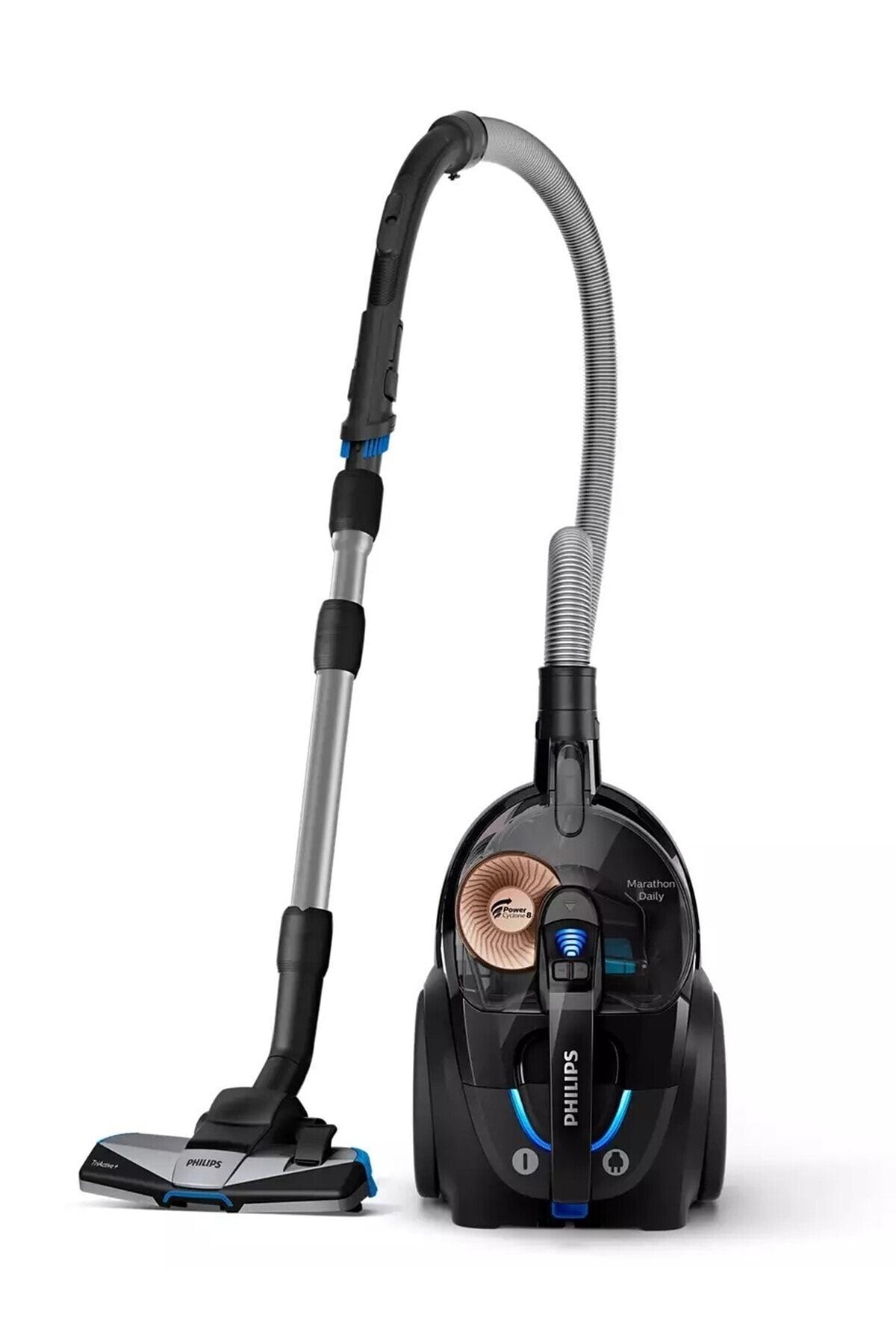 Product Description PowerCyclone 8 technology Allergy H13 filter 99.9% dust collection* * CarpetClean hood Allergy lock system TriActive+ hood High efficiency 900W motor Included accessories Hygienic dust extraction Digital power control Integrated brush Collects and traps 99.9% of fine dust * Thanks to exceptional traction and AllergyLockPhilips 7000 Series Bagless Vacuum Cleaner offers our highest suction power ever.