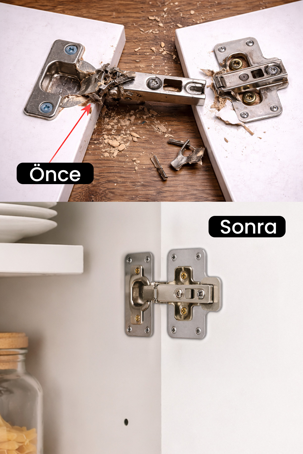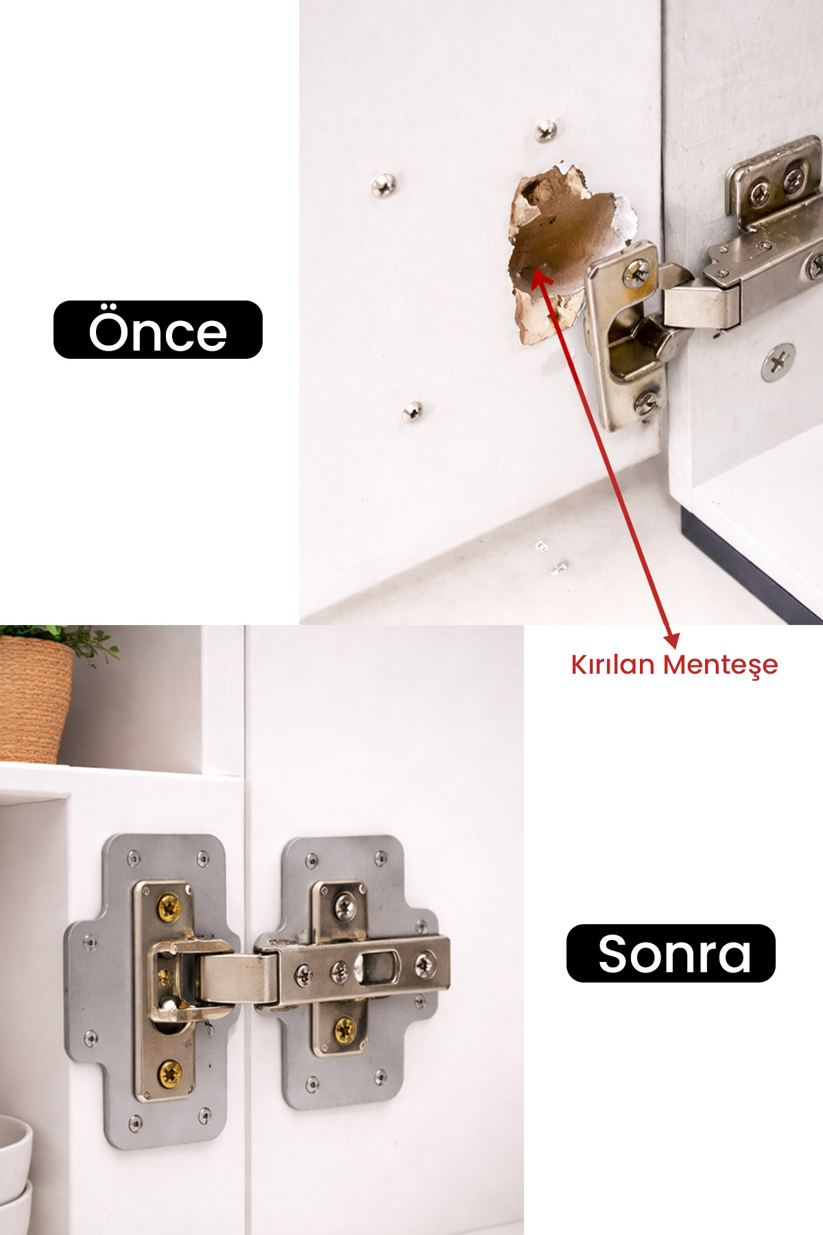 Incredibly simple to use: Place the repair sheet over the broken hinge area and secure it to the cover with the screws that come out of the package. Then mount your hinge in the sturdy threaded holes on the sheet metal part. That's it! Thanks to this kit, the door of your closet will close as stably and quietly as on the first day. Save your cabinets from being trashed and extend their life by saving both money and time.