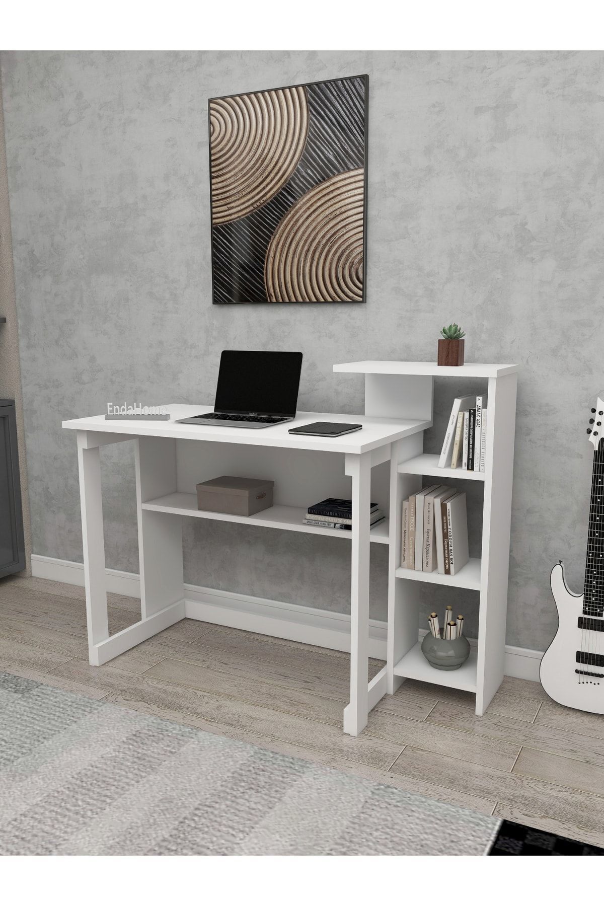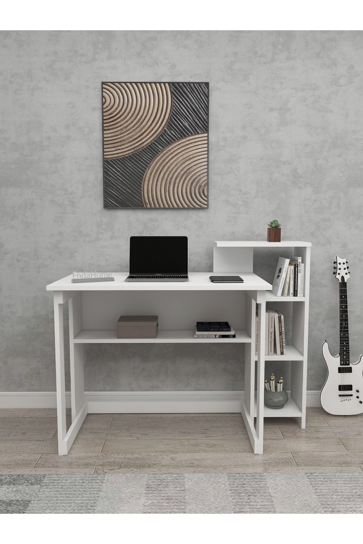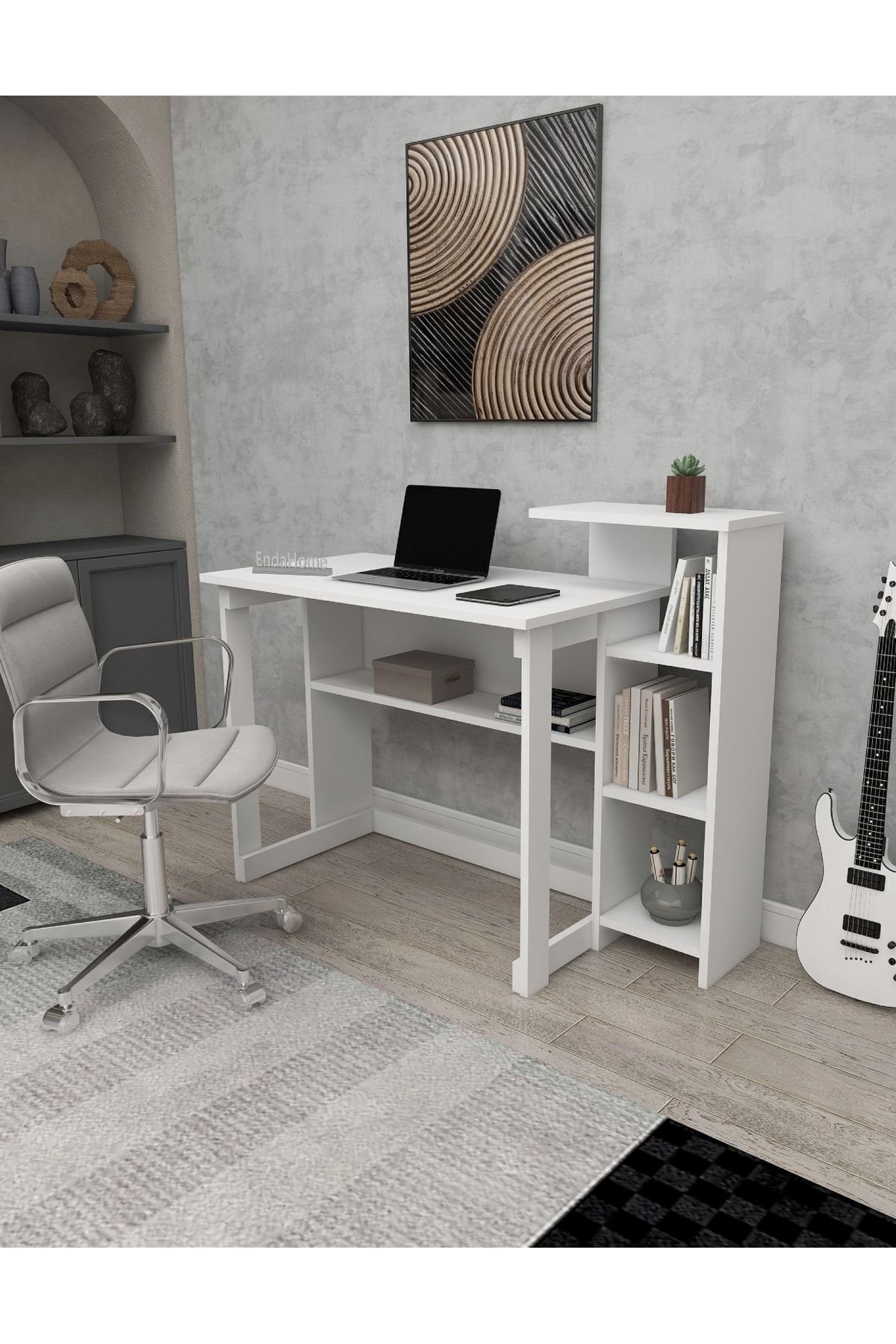Our desk, which offers extra storage space thanks to its four shelves, helps you store your books, files and other belongings in an organized way