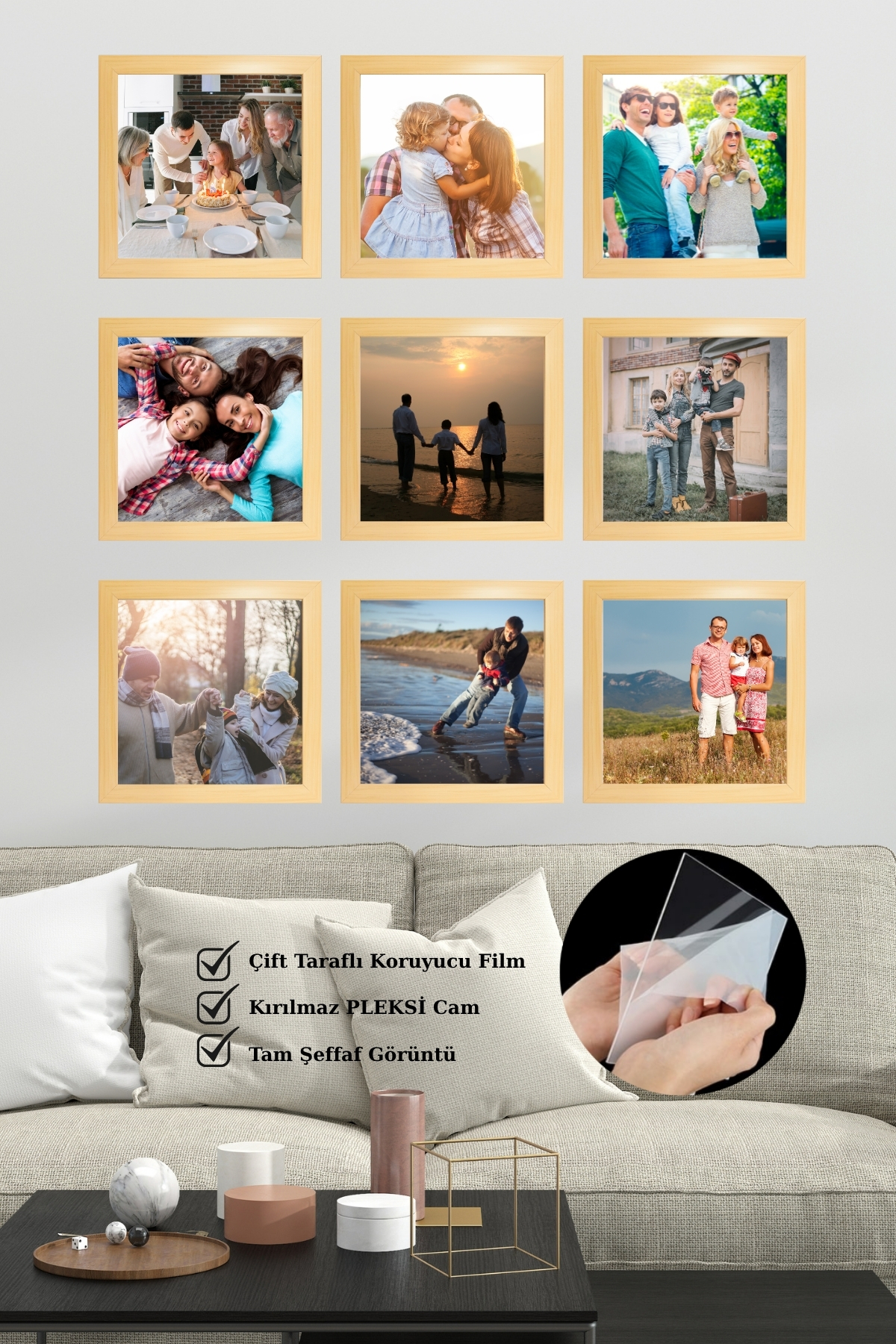 9 Pieces Square Picture Photo Frame Set Protected Unbreakable Plexiglass