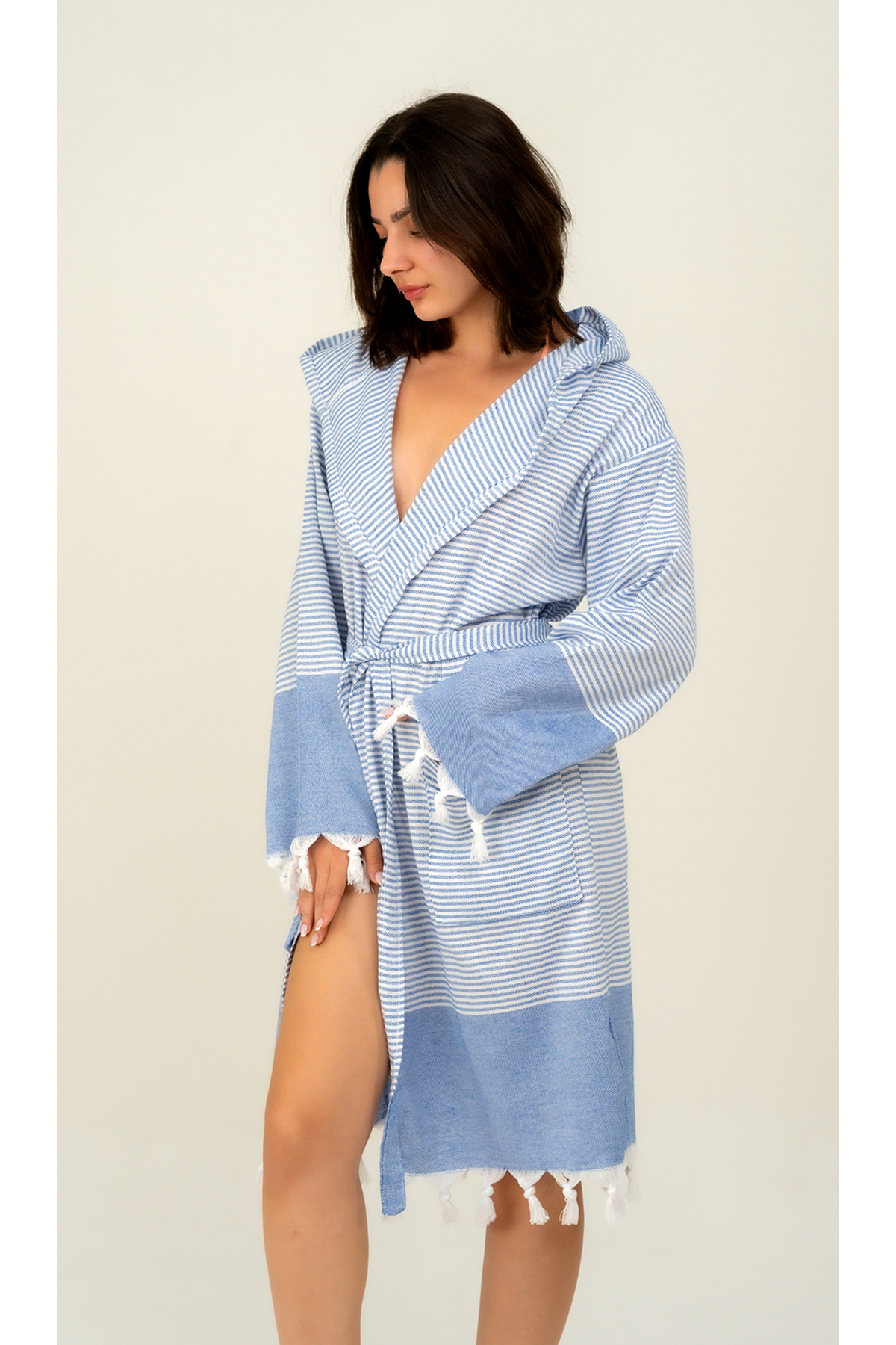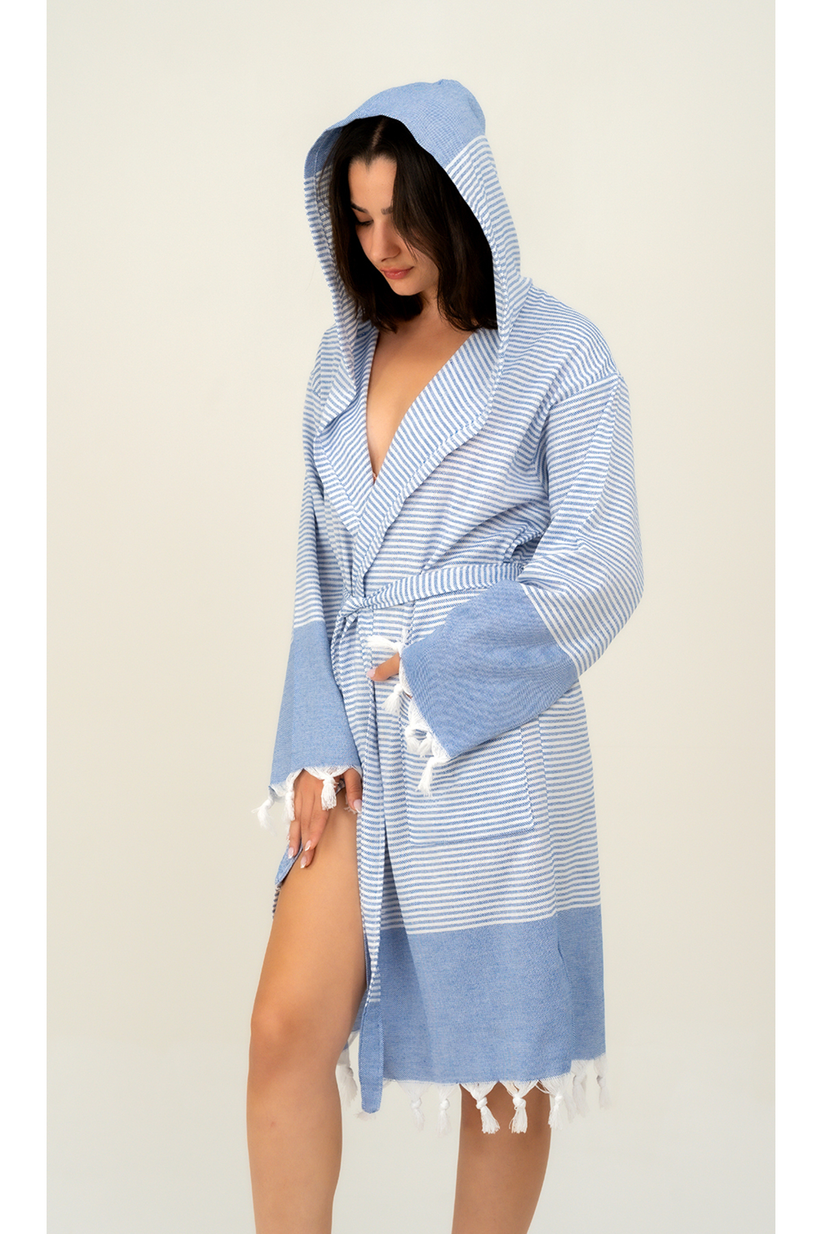 Available as a single item, this bathrobe is ideal for a minimalist and stylish look
