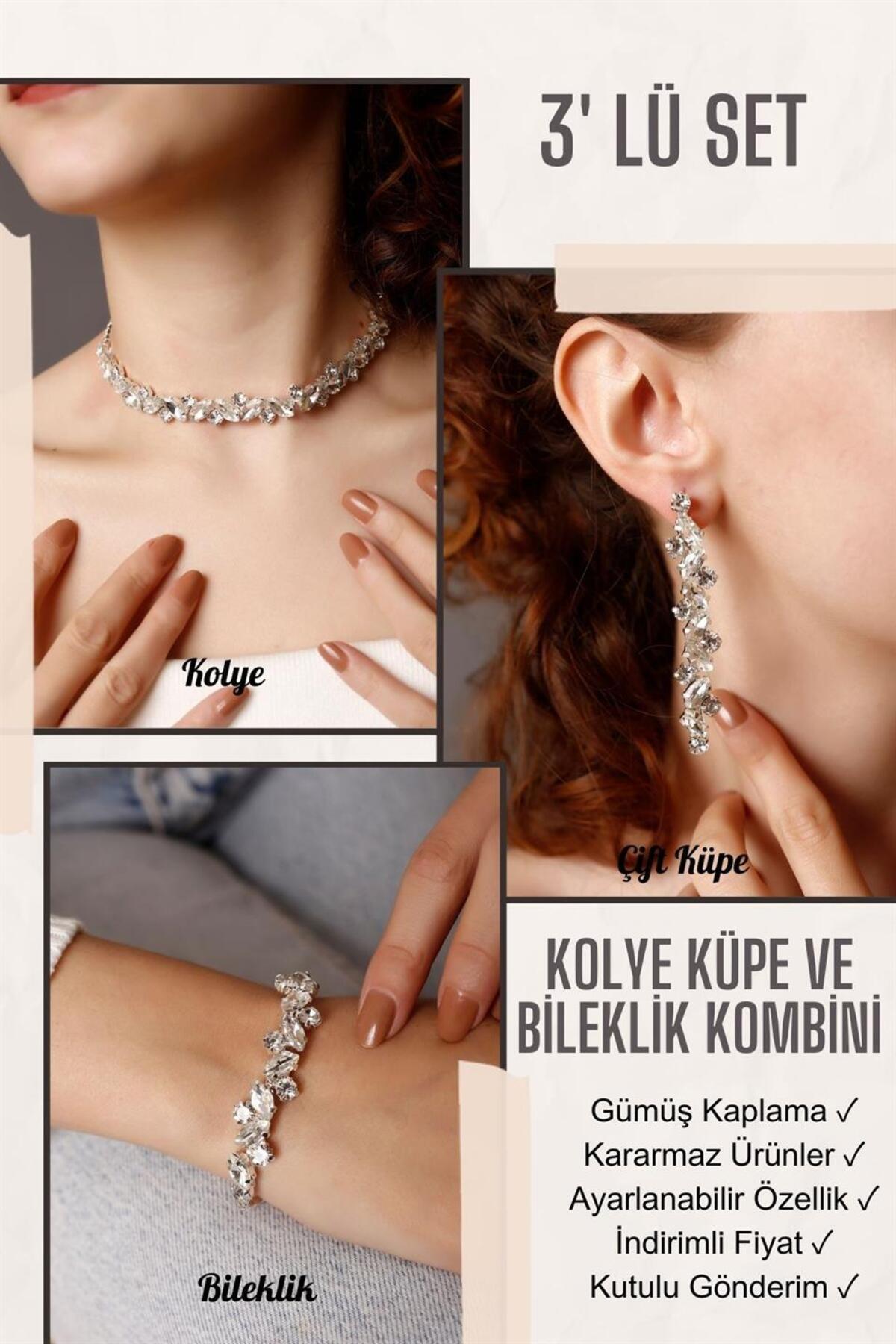 There is 1 choker necklace, 1 bracelet and double earrings in the package.