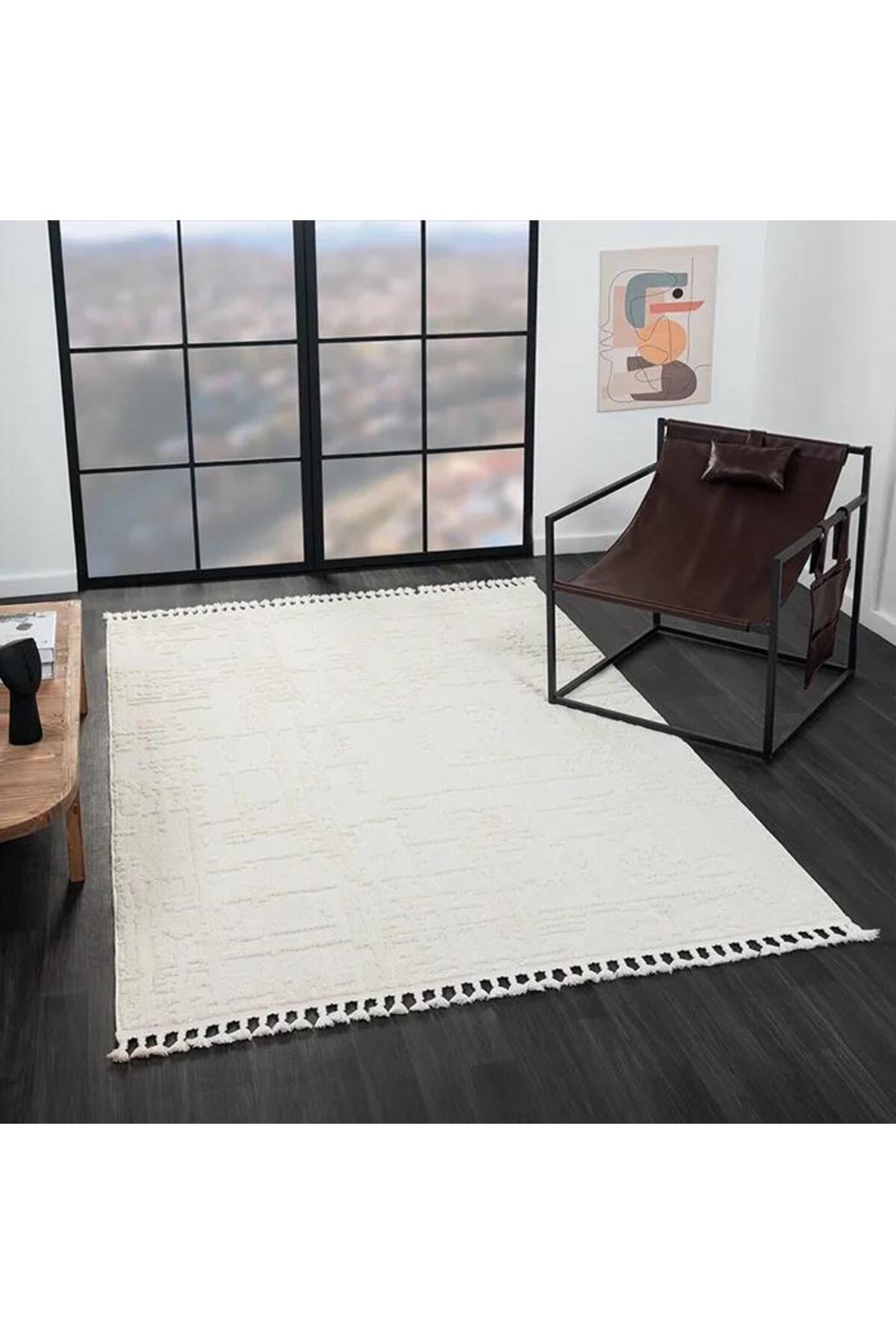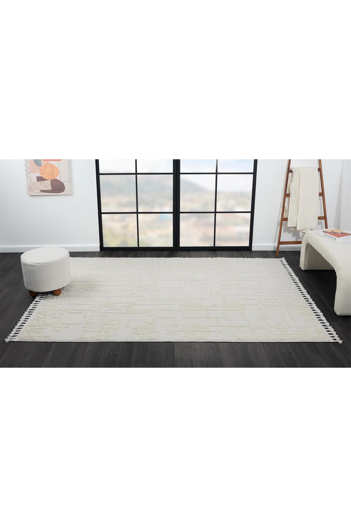 Karmen Carpet Wool Wl004a offers a natural and sophisticated touch in home decoration with its beige color and embossed sisal curl texture.