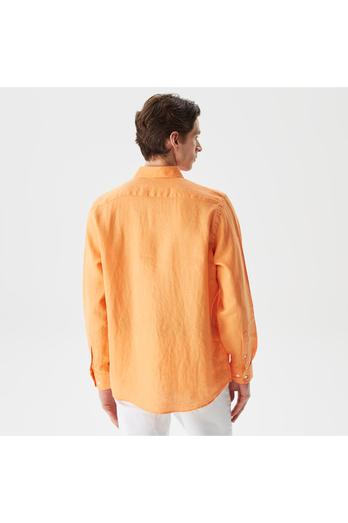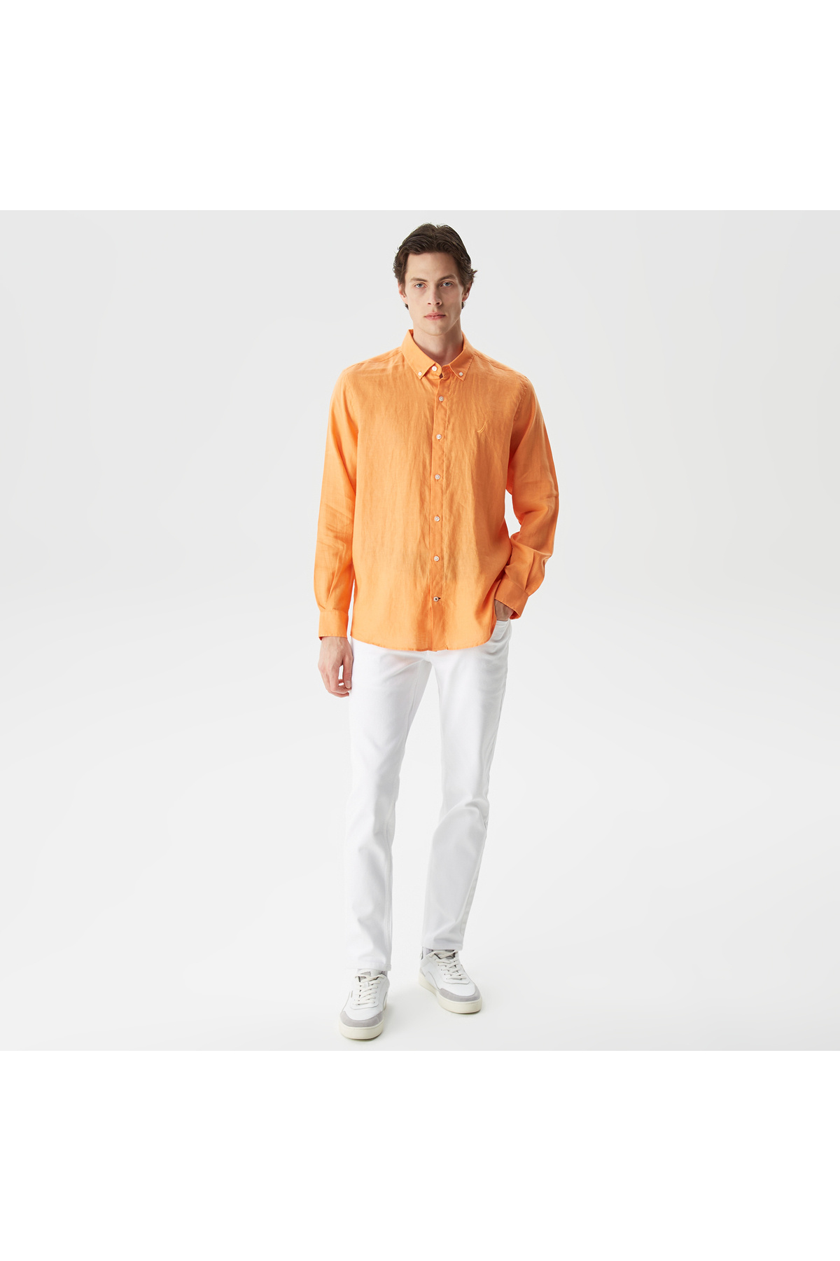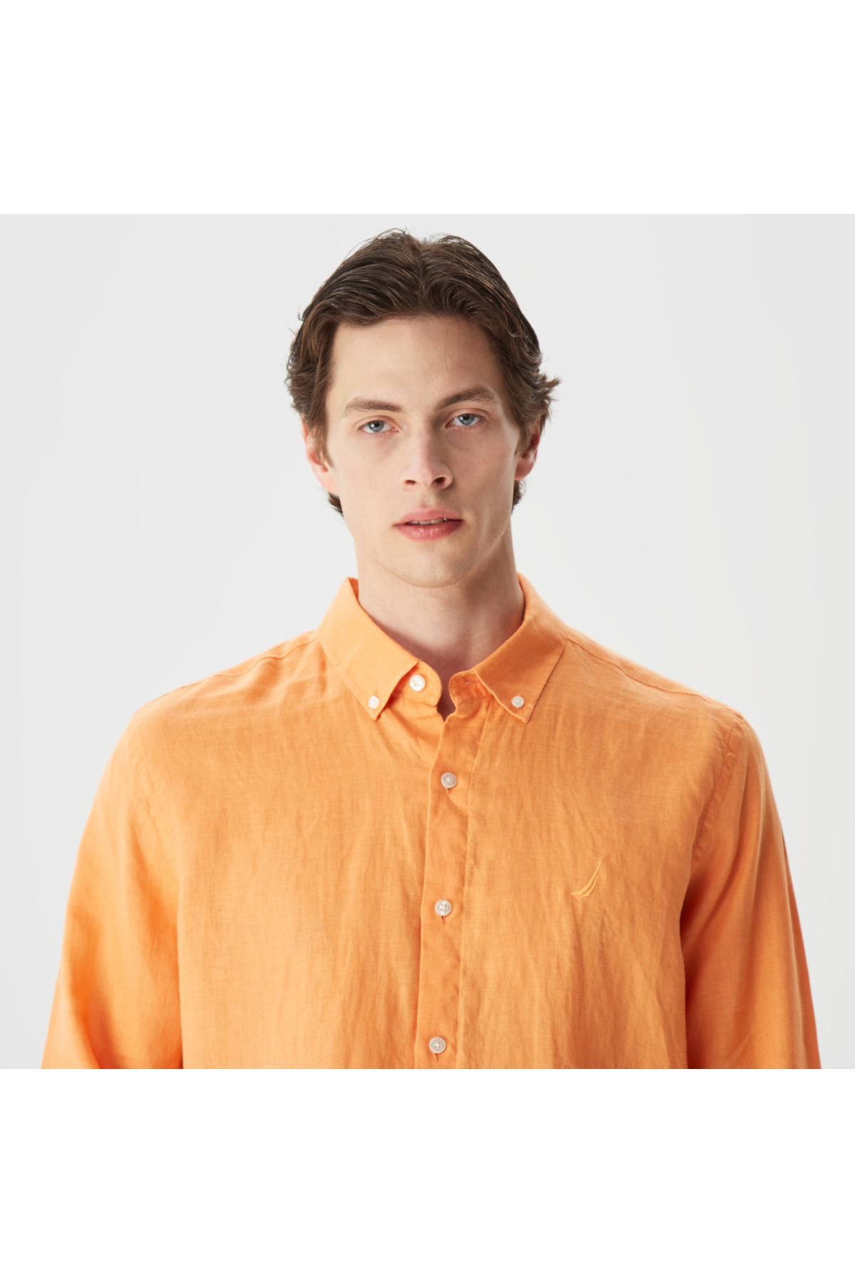 NAUTICA MEN 'S ORANGE SLIM FIT LONG SLEEVE LINEN SHIRT