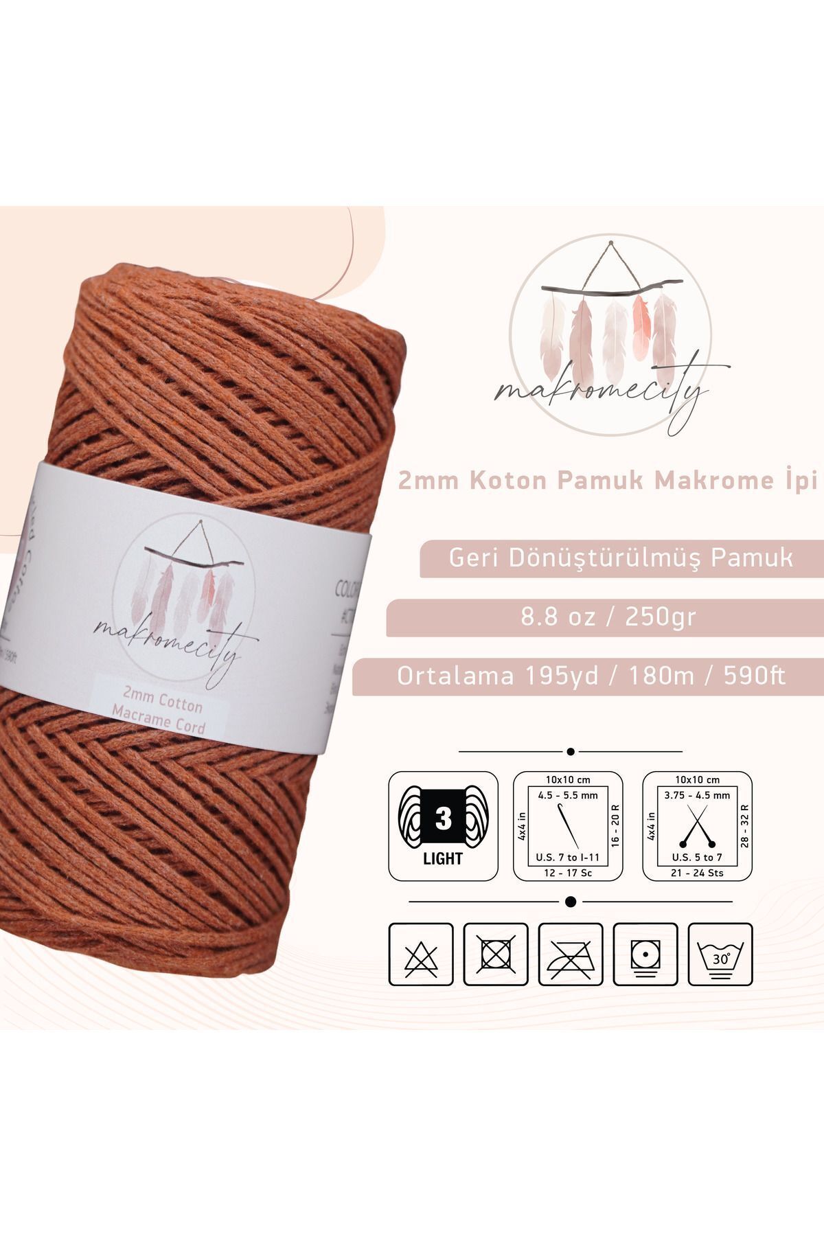 Makromecity Premium Cotton Macrame Drawstring Tile 200g 150 Meters 2mm Cotton Chain Macrame Bags Drawstring Underplate | ByTR