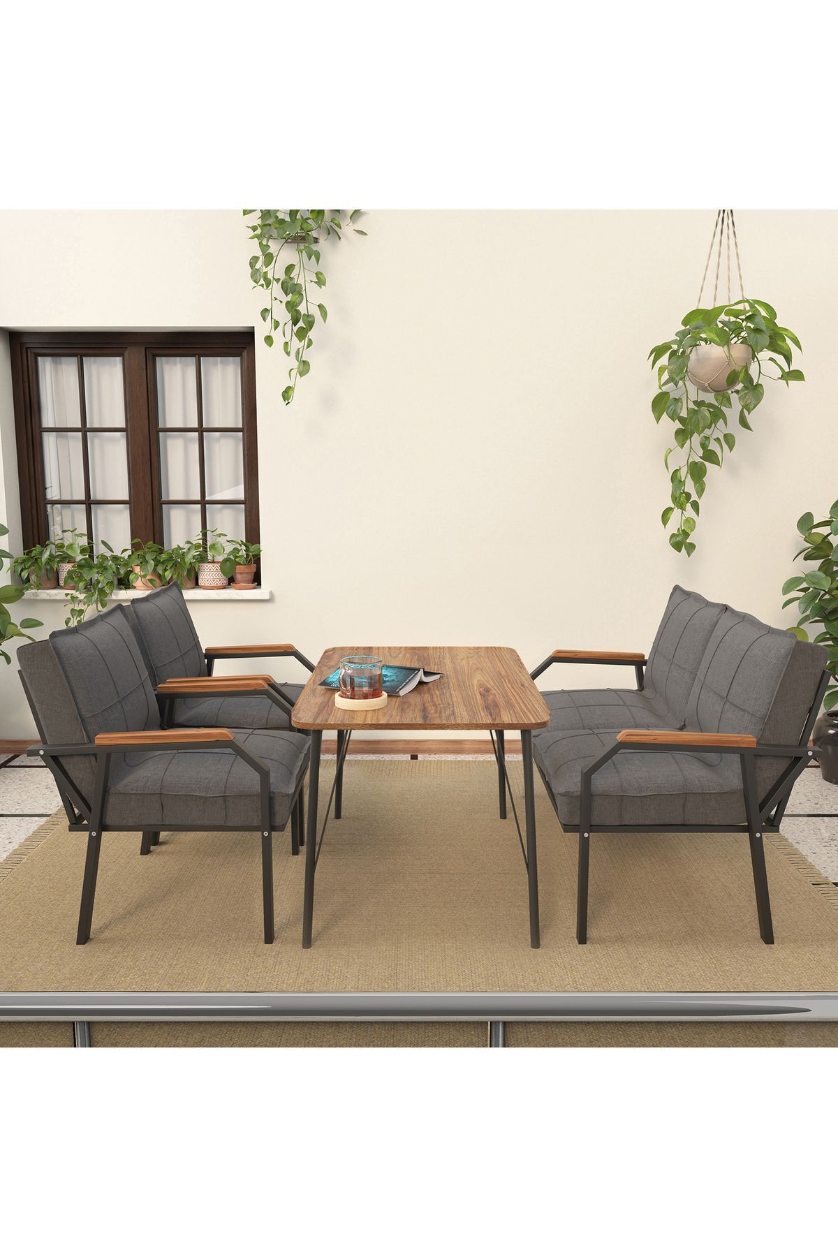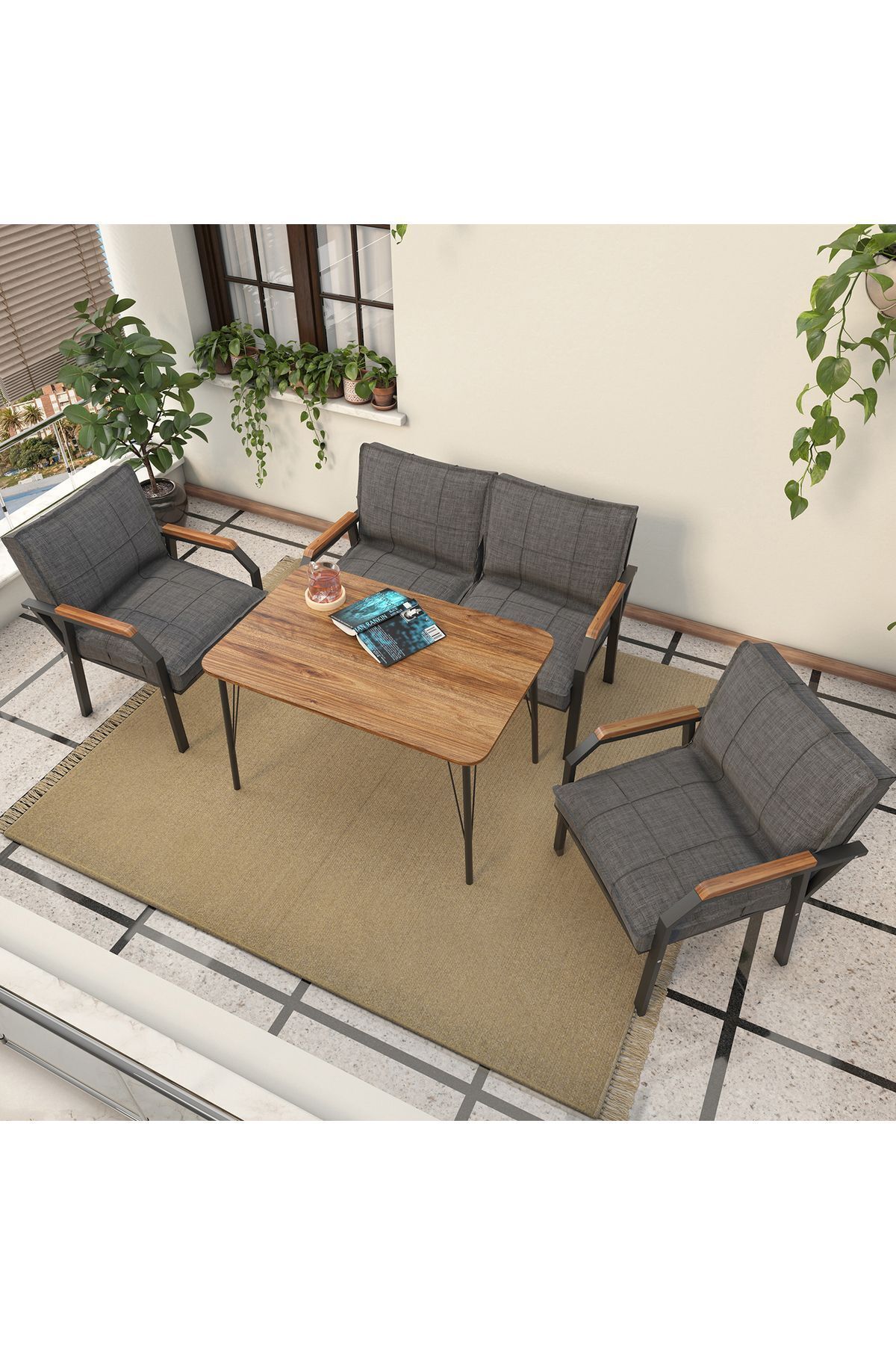Mygusi Imaginary Balcony, Garden, Cafe, Metal Sofa Sofa Set , Garden Furniture, 60x90 Tables - 211 Dark Gray | ByTR