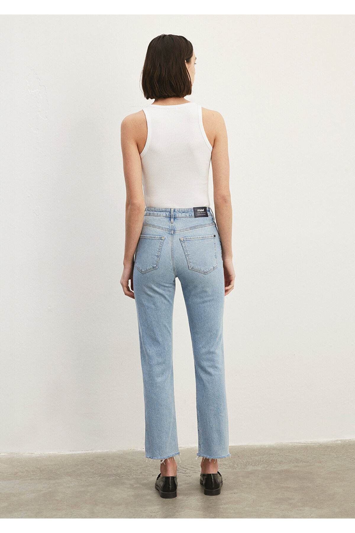 Straight High Waist Flat Leg Mannequin size: Height: 180 cm / Waist: 63 cm /Chest: 80 cm / Hip: 90 cm Materiel: 99% Cotton 1% Elastane Fabric Type: Denim Cuff: Flat Leg Sleeve: Flat Leg Gender: Women Fit: Straight Production Location: Turkey Waist: High Waist