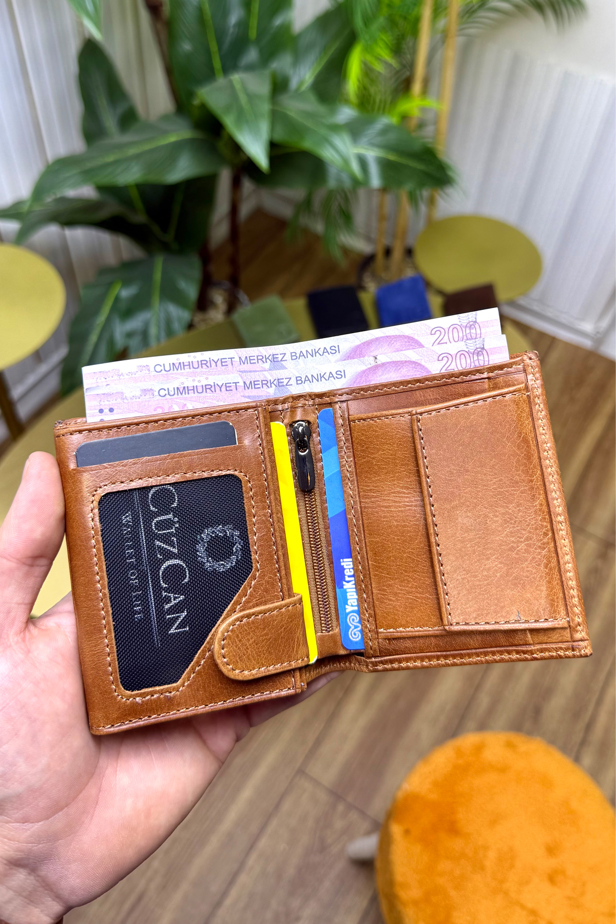 - Quality exclusive Genuine Leather CüzCan Florida Tan Genuine Leather Men's Coin Split Wallet (RFID BLOCKER) model will make you look stylish in any environment.