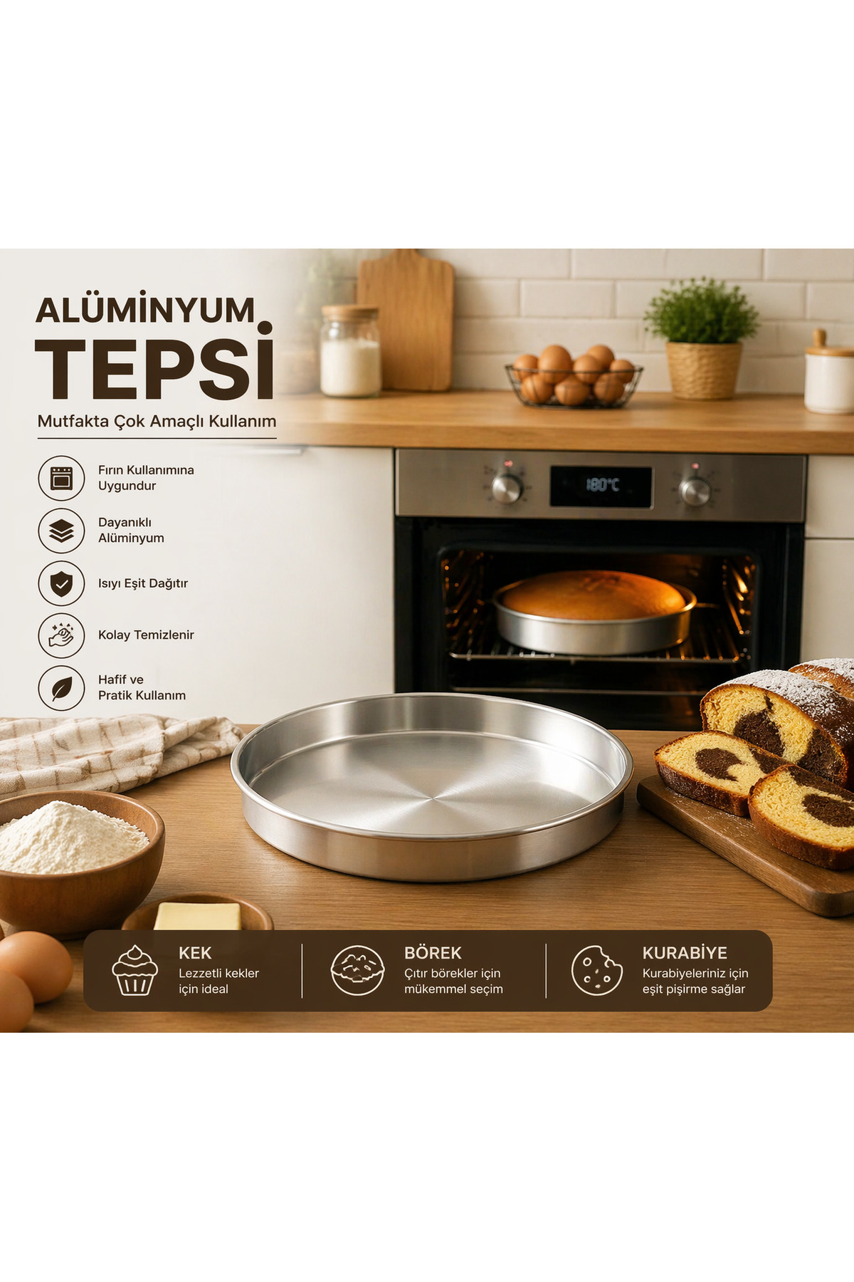 Thanks to its stainless aluminum material, it provides long-lasting use and easy cleaning