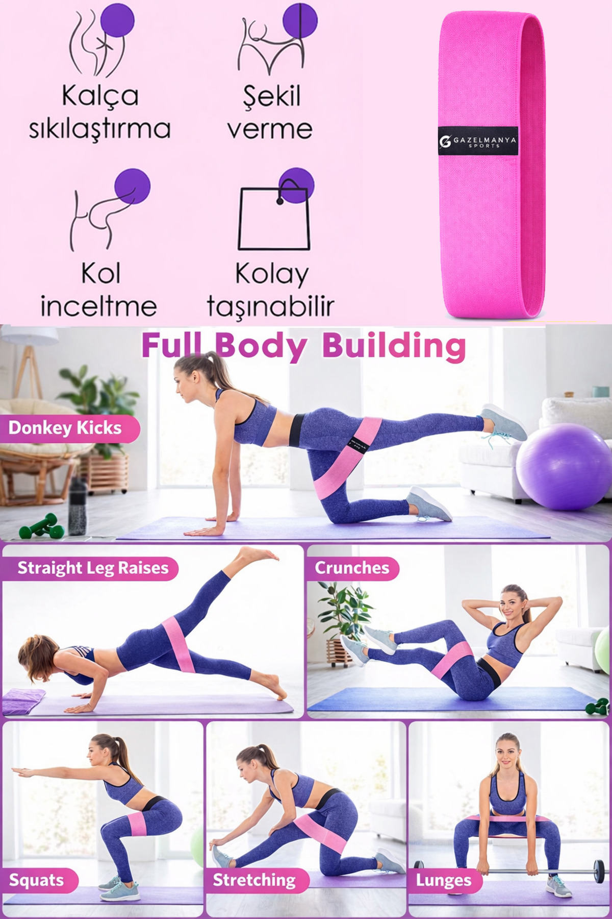 Thanks to its length, it is suitable for stance, lunge, jumping jack, etc. movements that you can do by wearing it on the ankle, as well as hip shaping exercises such as squats and hip raises that you will do by wearing it on the upper leg.