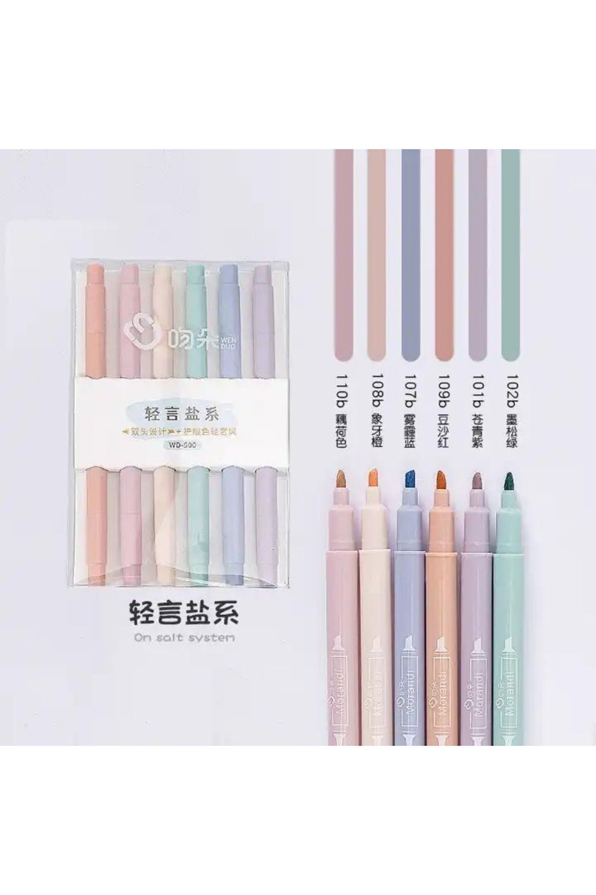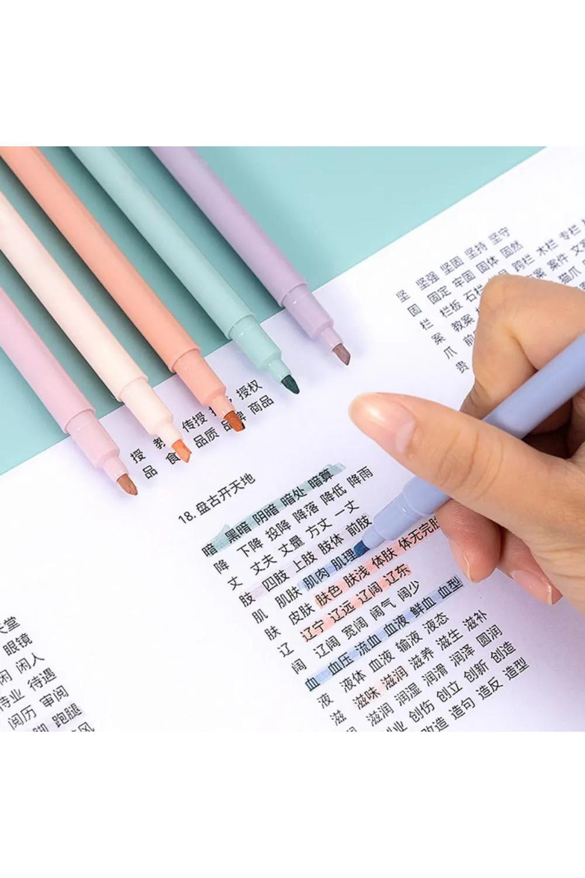 NaSaDAN Ultra Soft 6-Piece Double-Sided Pastel Highlighter Pen Set – Cylinder Design | ByTR
