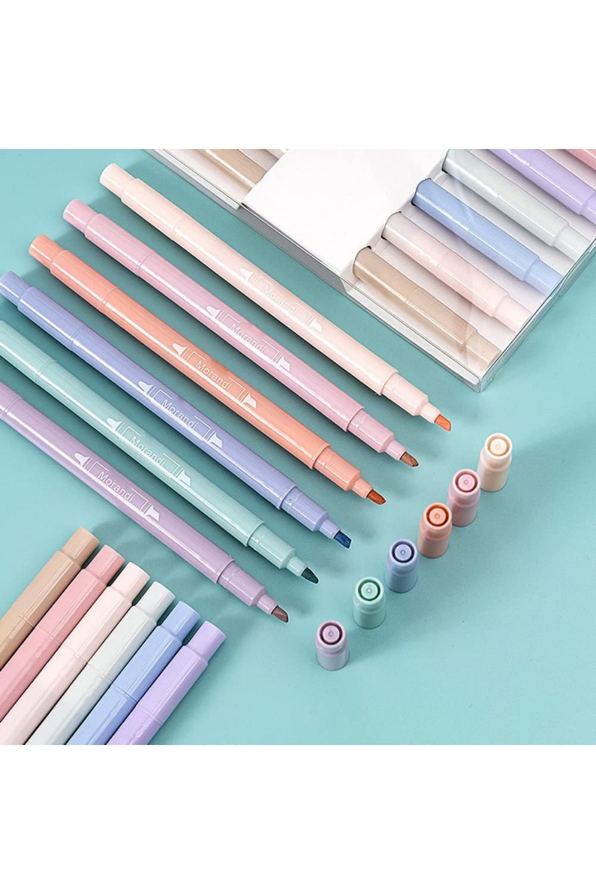 Ultra Soft 6-Piece Double-Sided Pastel Highlighter Pen Set – Cylinder Design