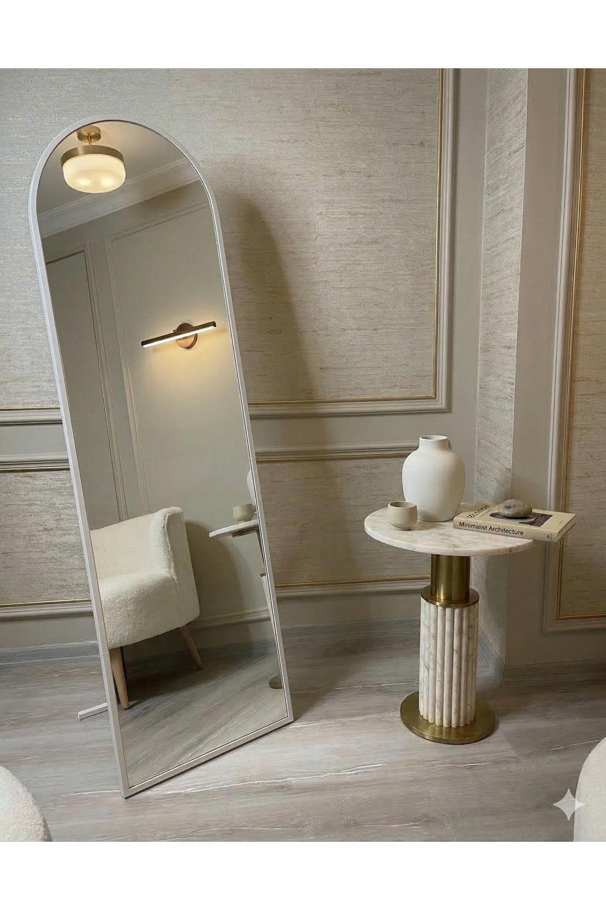 🌟 Product Description – White Legged Height Mirror This metal framed height mirror is designed to add elegance and elegance to your living spaces as both a decorative and functional product.