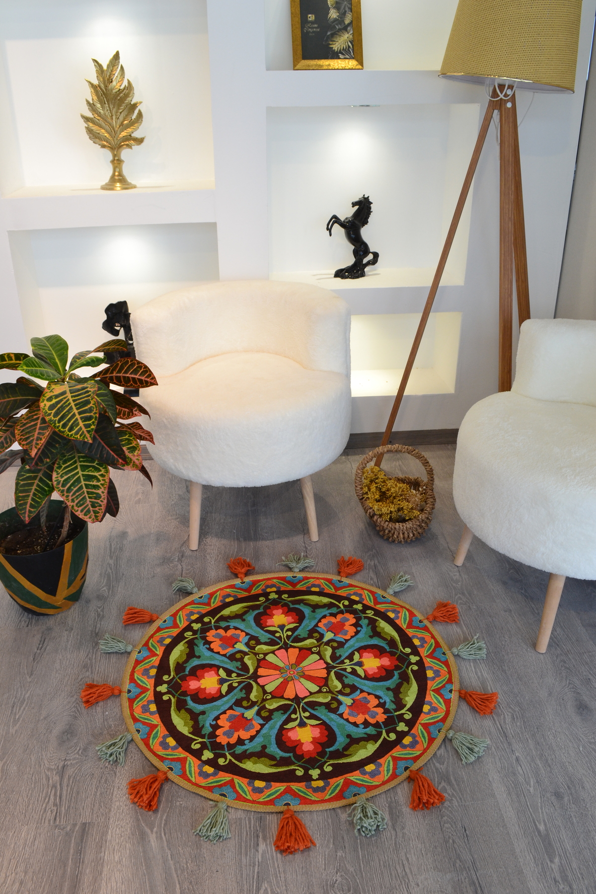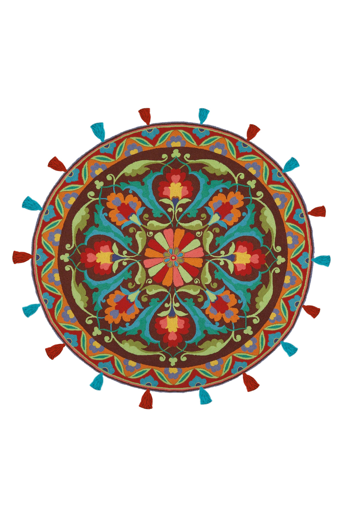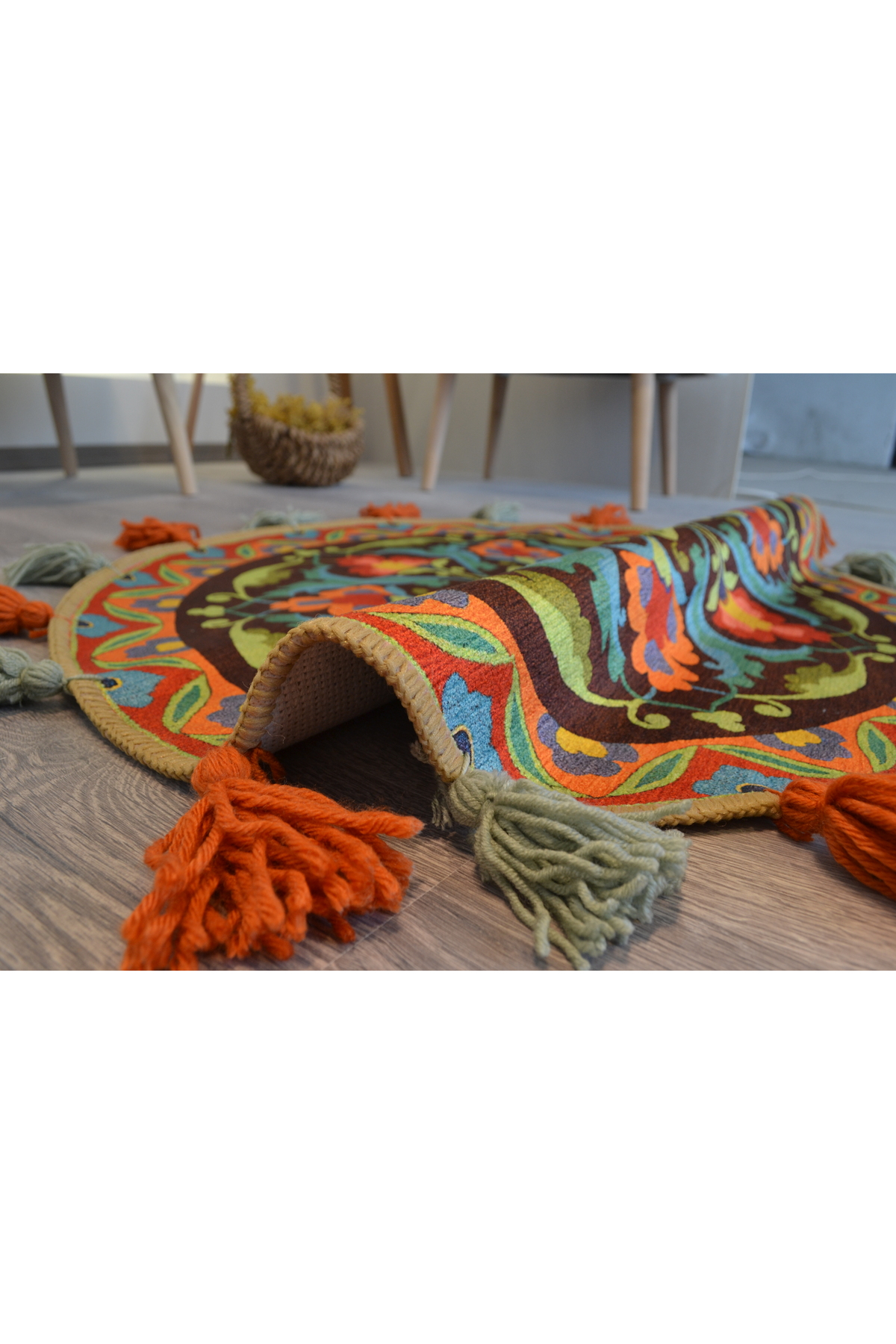 Rugs Modern Halı Suzani Ethnic Multicolor Tasseled Woven Base Round Decorative Carpet 1712 | ByTR