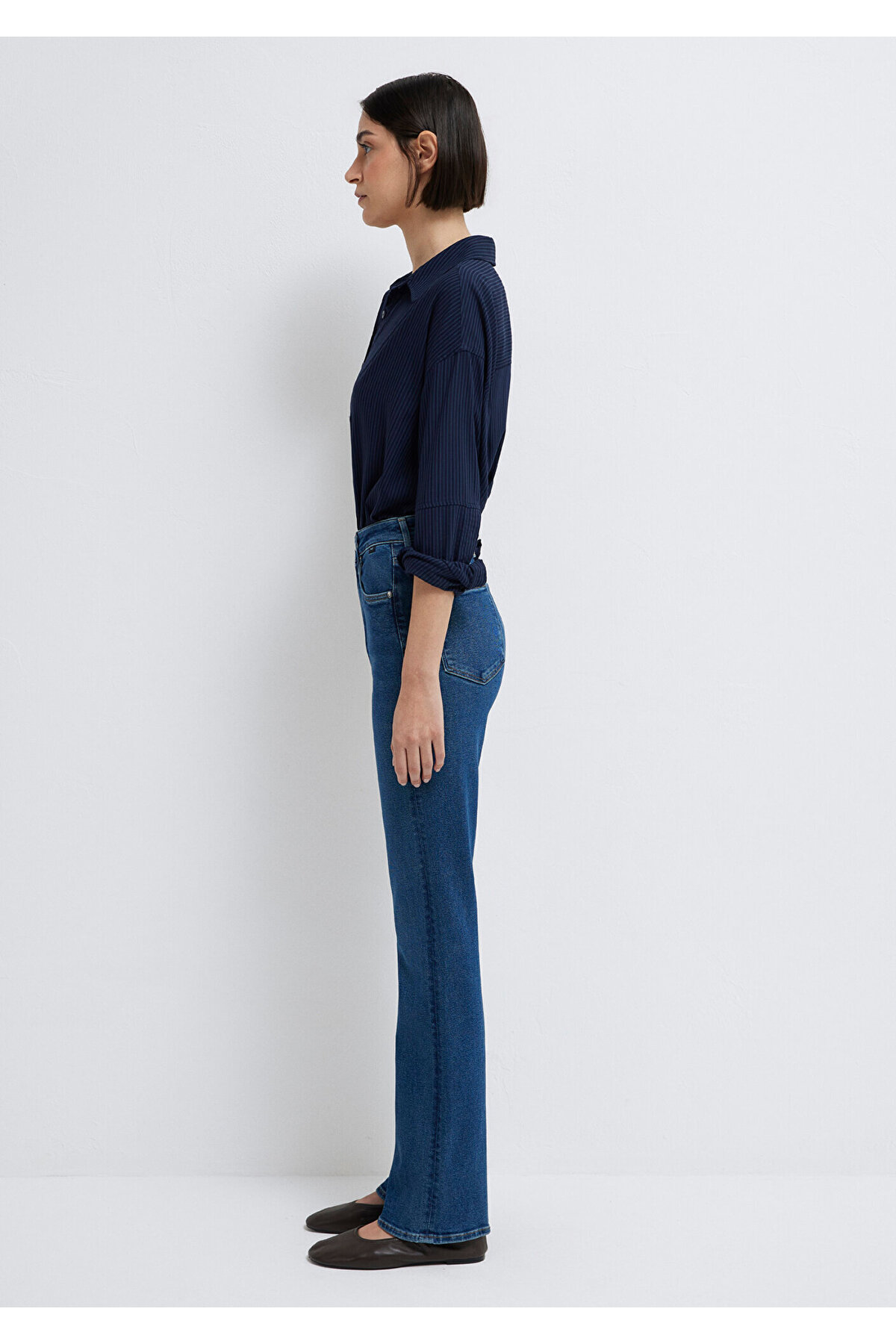 Flare-Bootcut High Waist Spanish Leg Model size: Height: 180 cm / Waist: 60 cm /Chest: 81 cm /Seat: 88 cm Materiel: 95% Cotton 3% Elastomultiester 2% Elastane Fabric Type: Denim Fit: Flare-Bootcut Sleeve: Spanish Leg Cuff: Spanish Leg Gender: Women's Production Location: Turkey Waist: High Waist