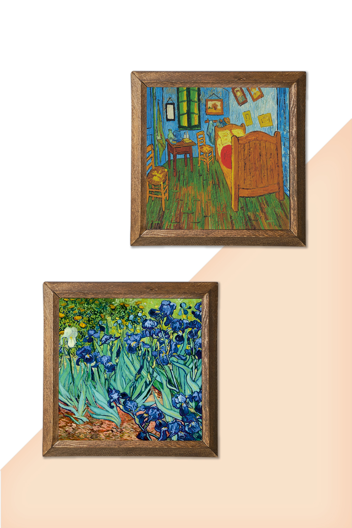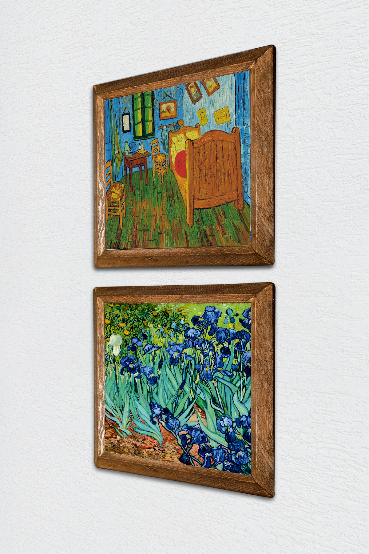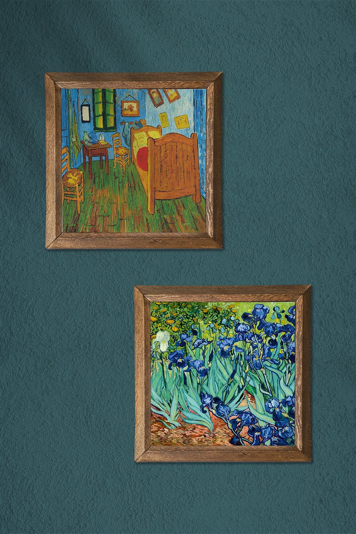 Bedroom in Van Gogh Arles, Irises - W2-387 - Natural stone material is used on the middle surface of the Wooden Framed Stone Wall Table.