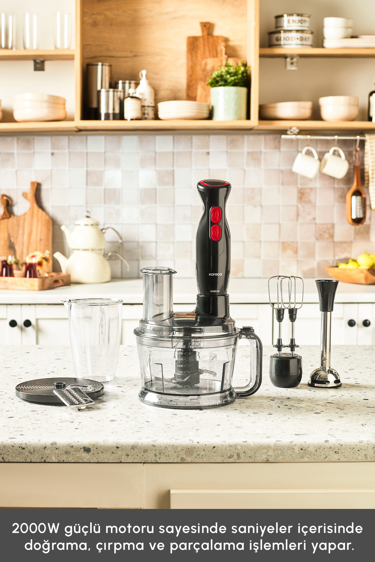 Thanks to its 2000W renewed high-performance powerful engine, it performs chopping, whipping and shredding operations in seconds.