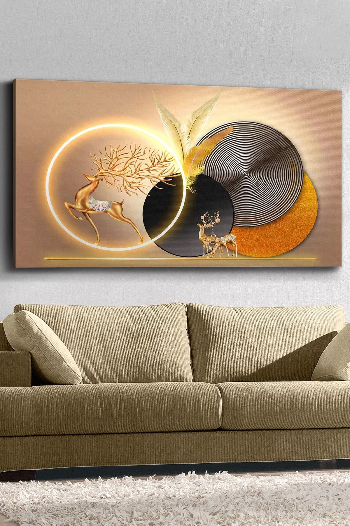 Deer round patterns one-piece unlit canvas painting that adds elegance to the decoration of your home with its modern design