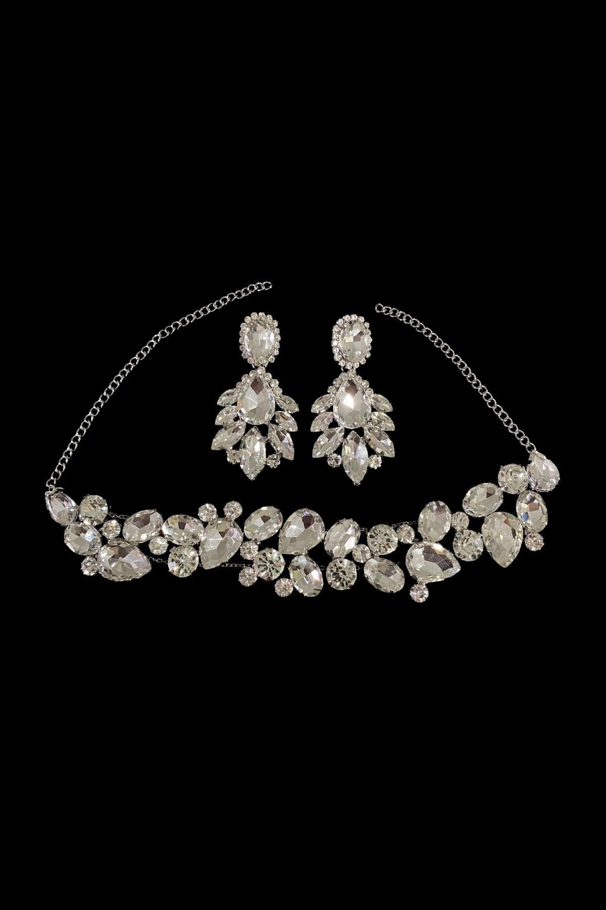 Women's Zenite Necklace Earrings Model Silver Plated Evening Dress with Crystal Zircon Gemstone Combination Jewelry Set All with Crystal Glass Gemstone More than 10 Different Cut Stones are Used. The necklace has an adjustable chain extension. The earring is assembled with a hidden ring. The materials are processed with the highest quality brass material. It is the type that does not cause weight in the ear. All of the Stones are 1st Quality Crystal Glass Stones. It is not plastic, it has a nickel-free coating. Our jewelry designers with 20 years of experience in the industry have already started to talk a lot with their ambitious earrings and necklace designs.