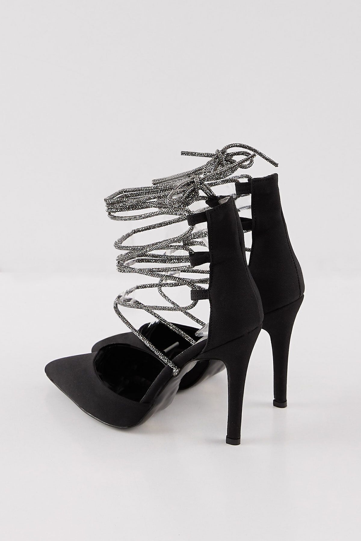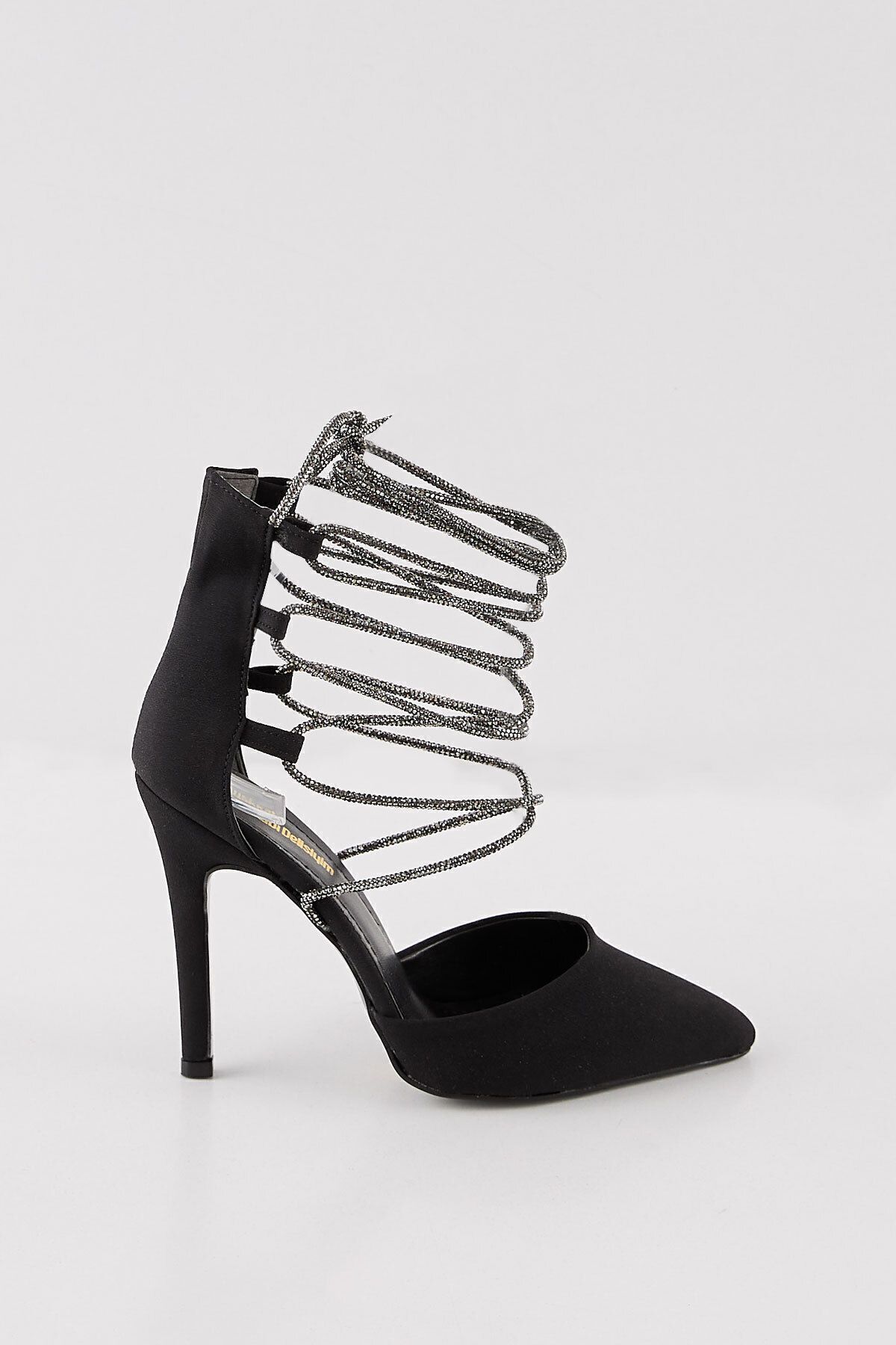 HEEL HEIGHT 11 CM MATERIAL Textile Designed with black stiletto stones.