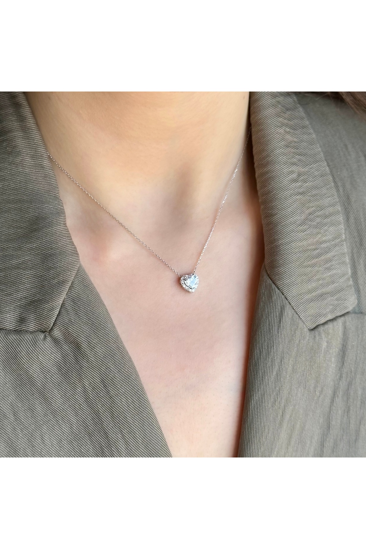 The diamond-mounted heart necklace, which attracts attention with its elegant design, offers quality and elegance together with its 925 carat silver material