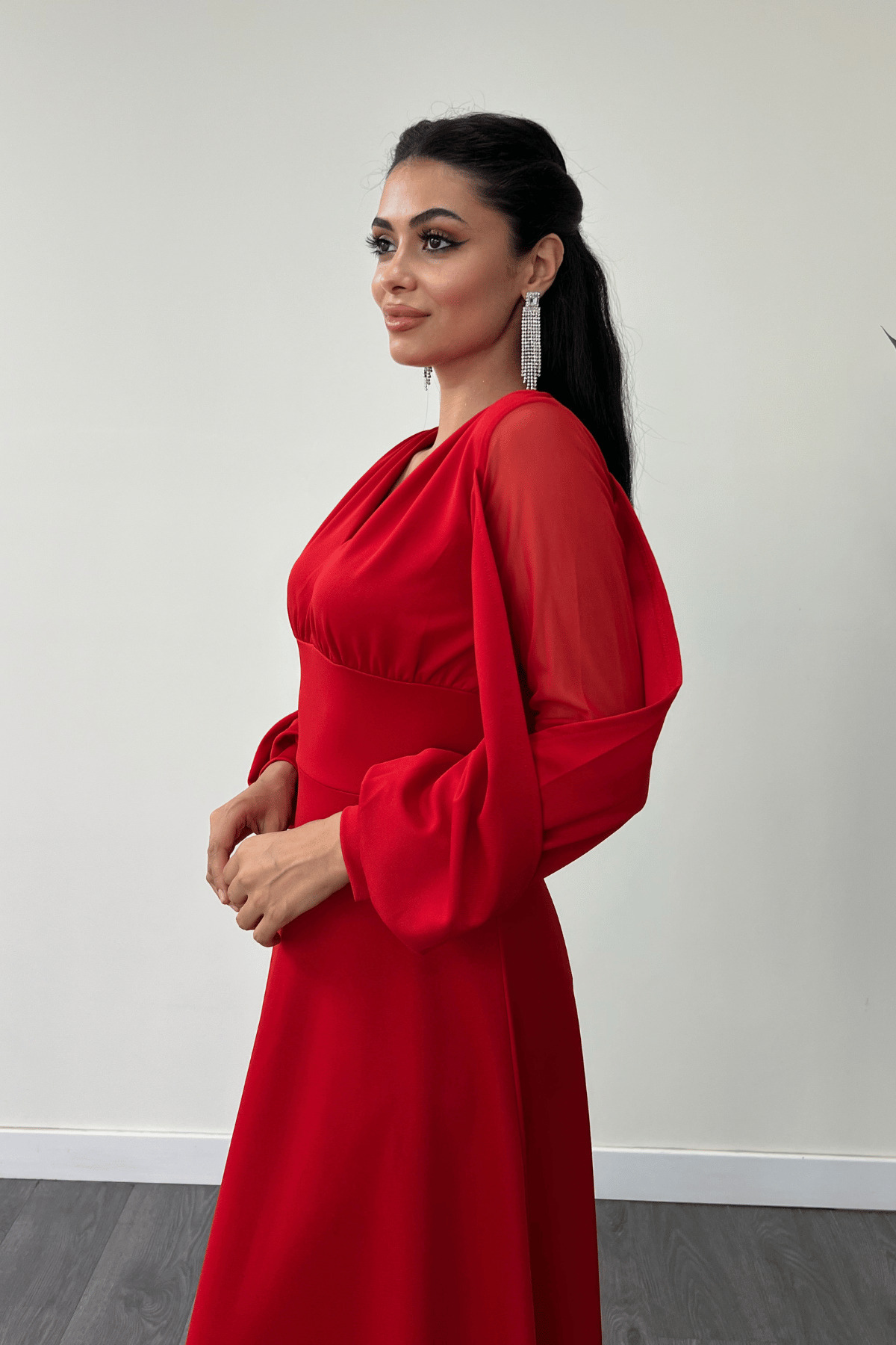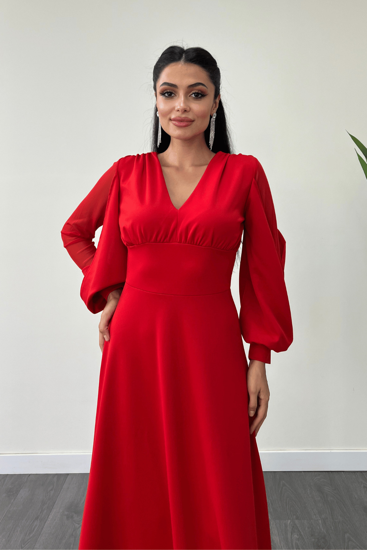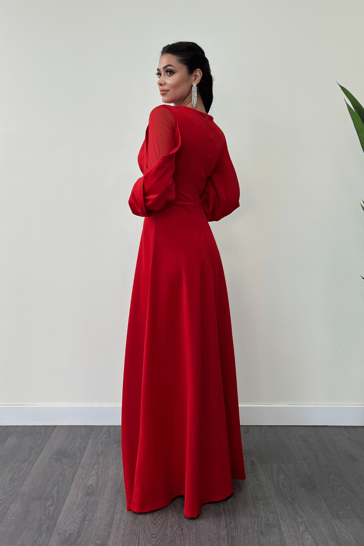 The evening dress made of crepe fabric, which attracts attention with its elegant and stylish design, is an ideal choice for all kinds of special night events