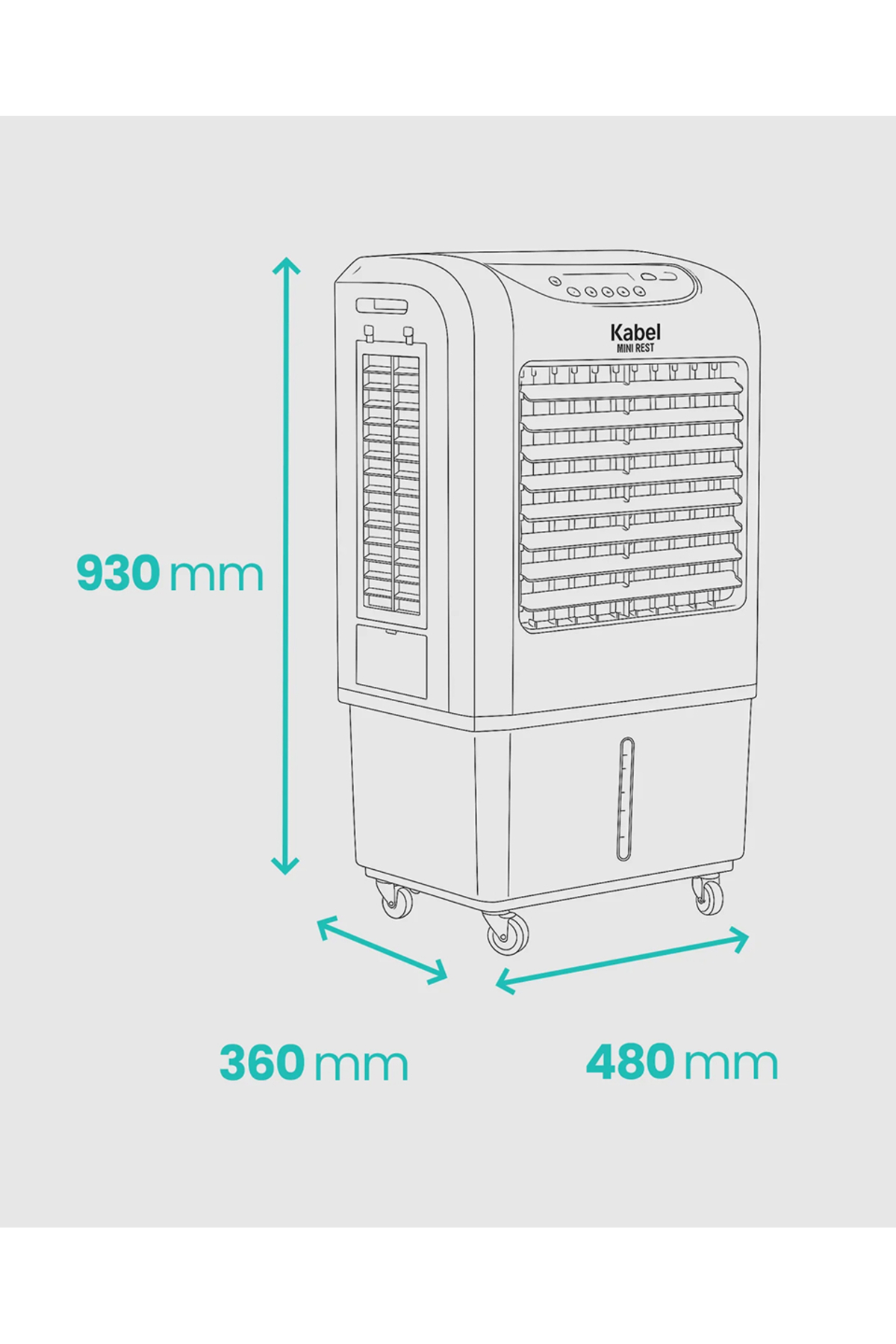 Kabel mini rest evaporative cooler: Portable coolness and fresh air Kabel mini rest evaporative cooler can be easily transported to the desired area thanks to its portable and easy-to-use wheels.