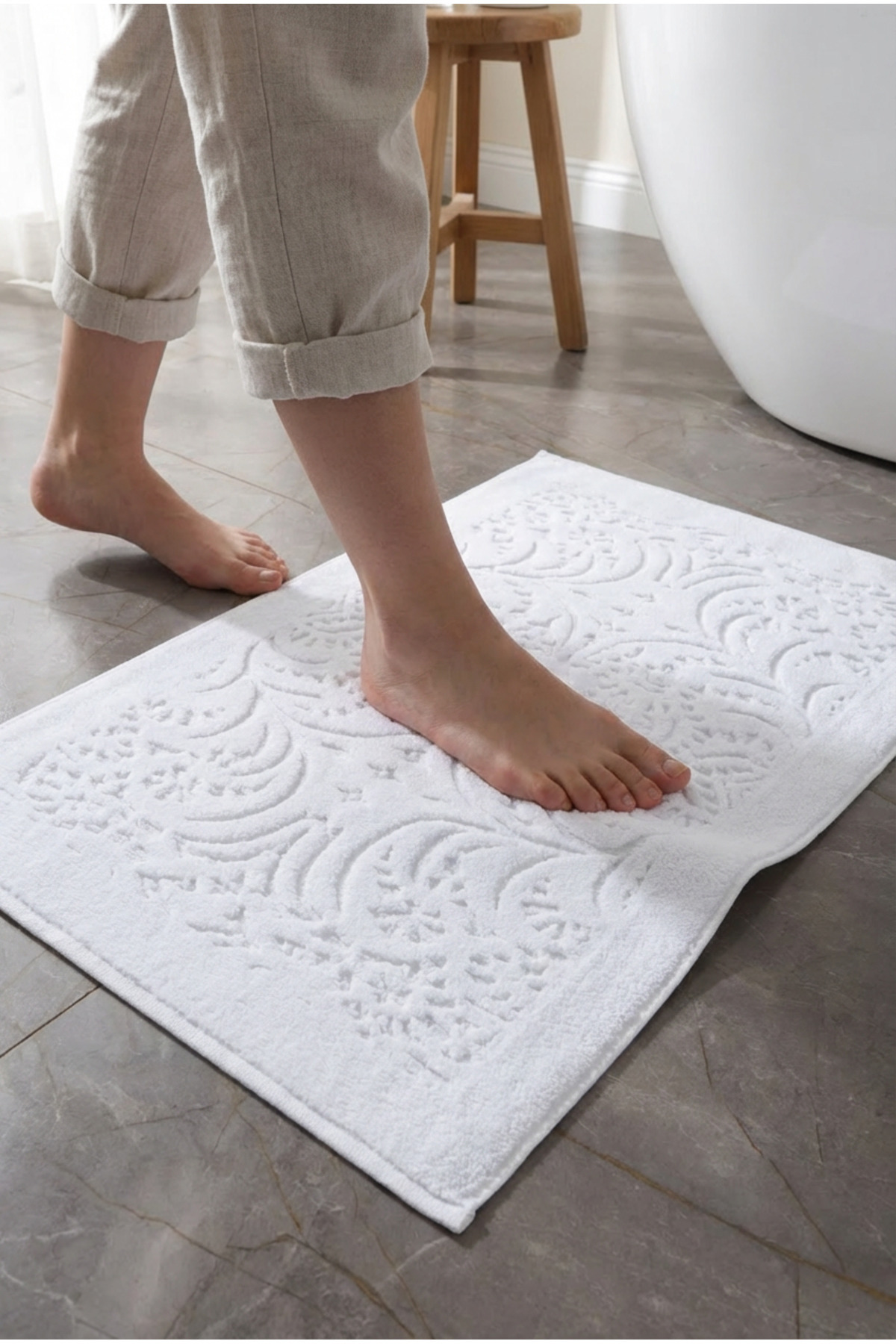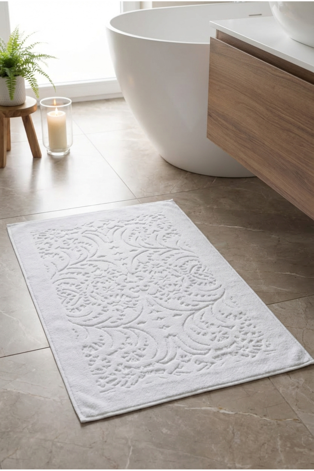 While giving a stylish and modern look with its jacquard pattern, it makes an aesthetic contribution to the decoration of your bathroom