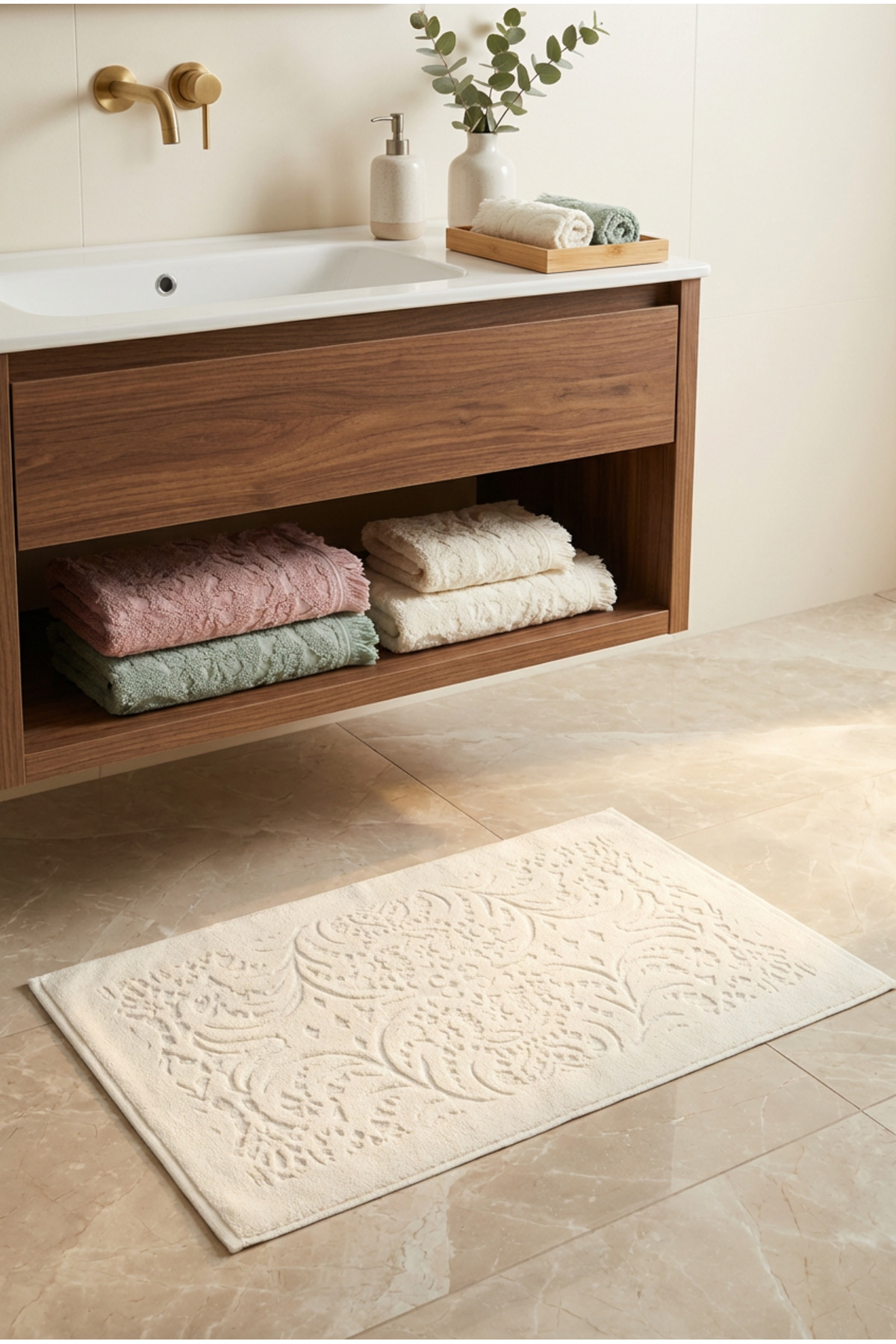 PRODUCT FEATURES Package Content Foot Towel 50x70 (2 Pieces) 350gr 100% Cotton 20/2 Pile, 20/2 Floor, 20/2 Weft.