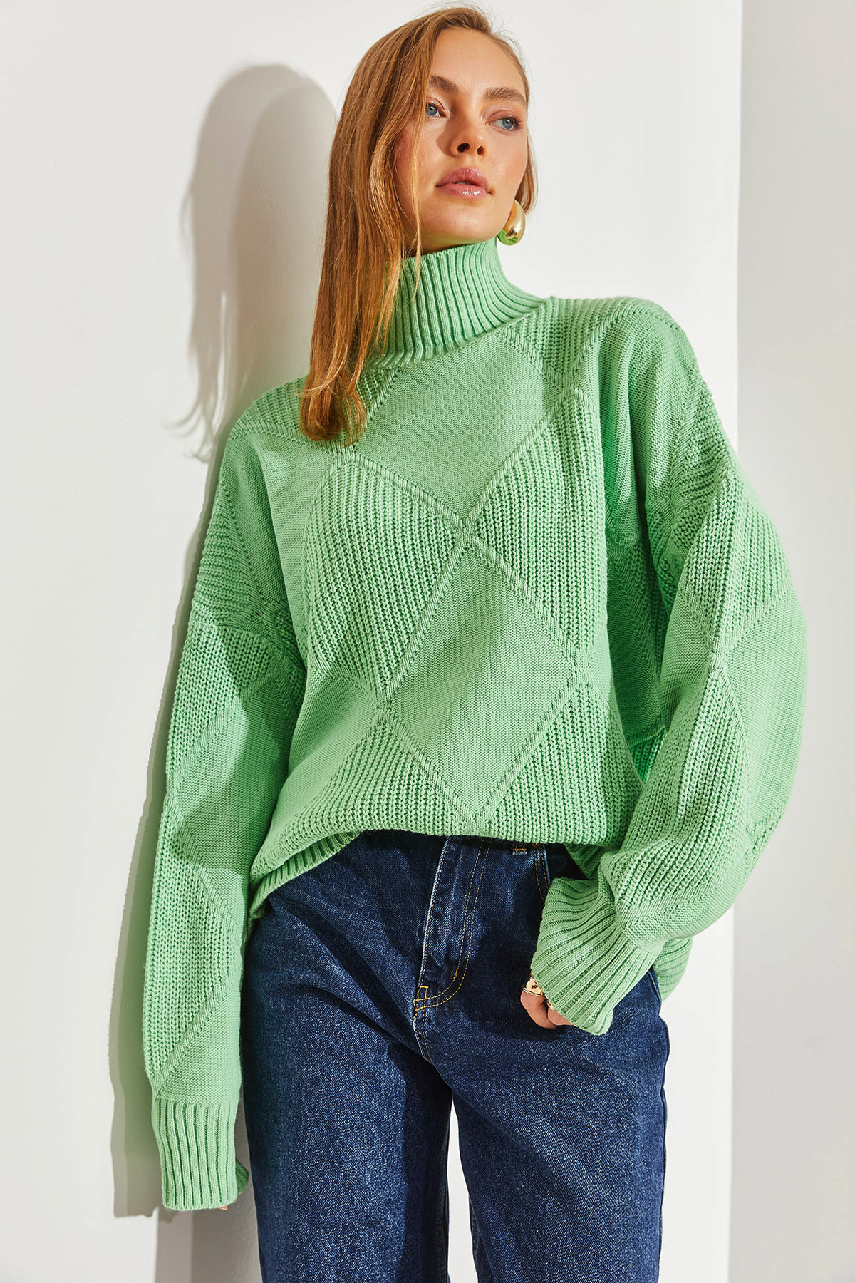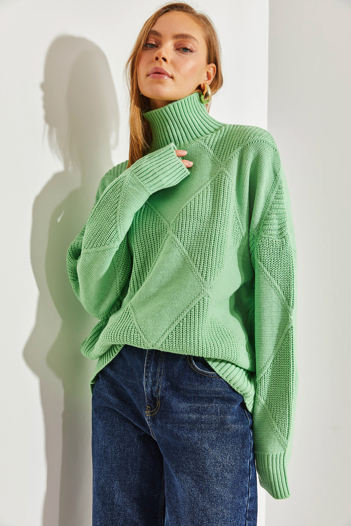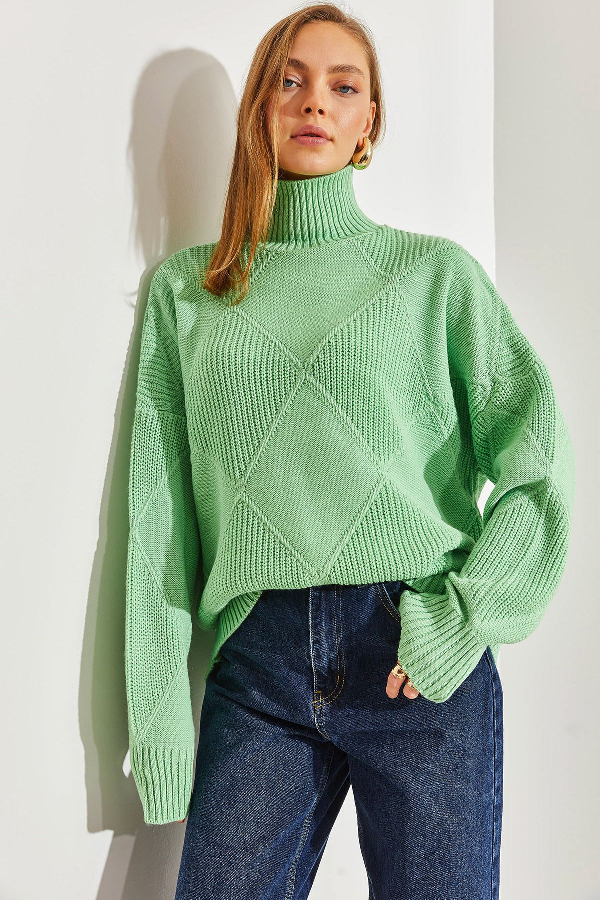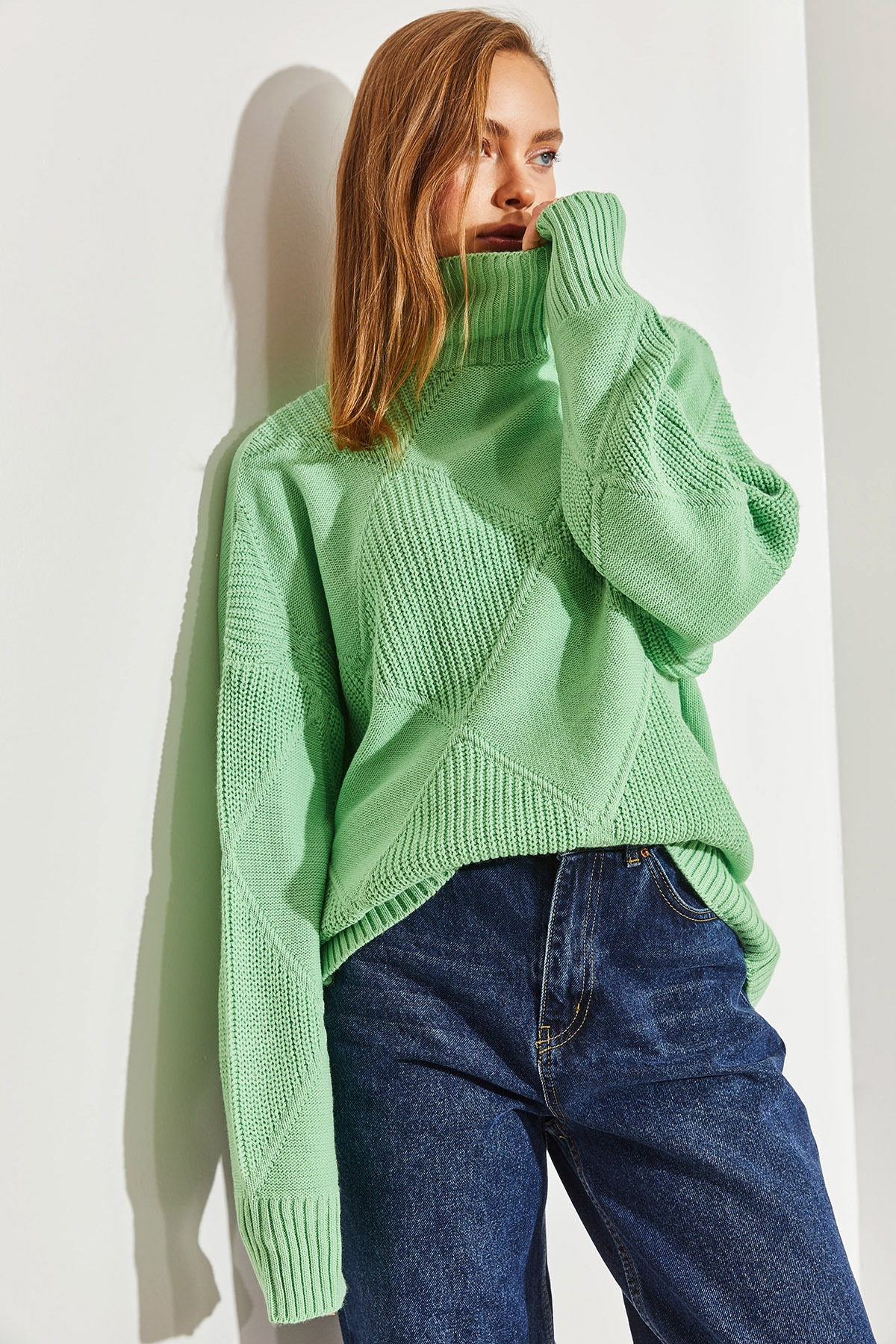 Turtleneck detail blends in with any combination, creating a classic and timeless style