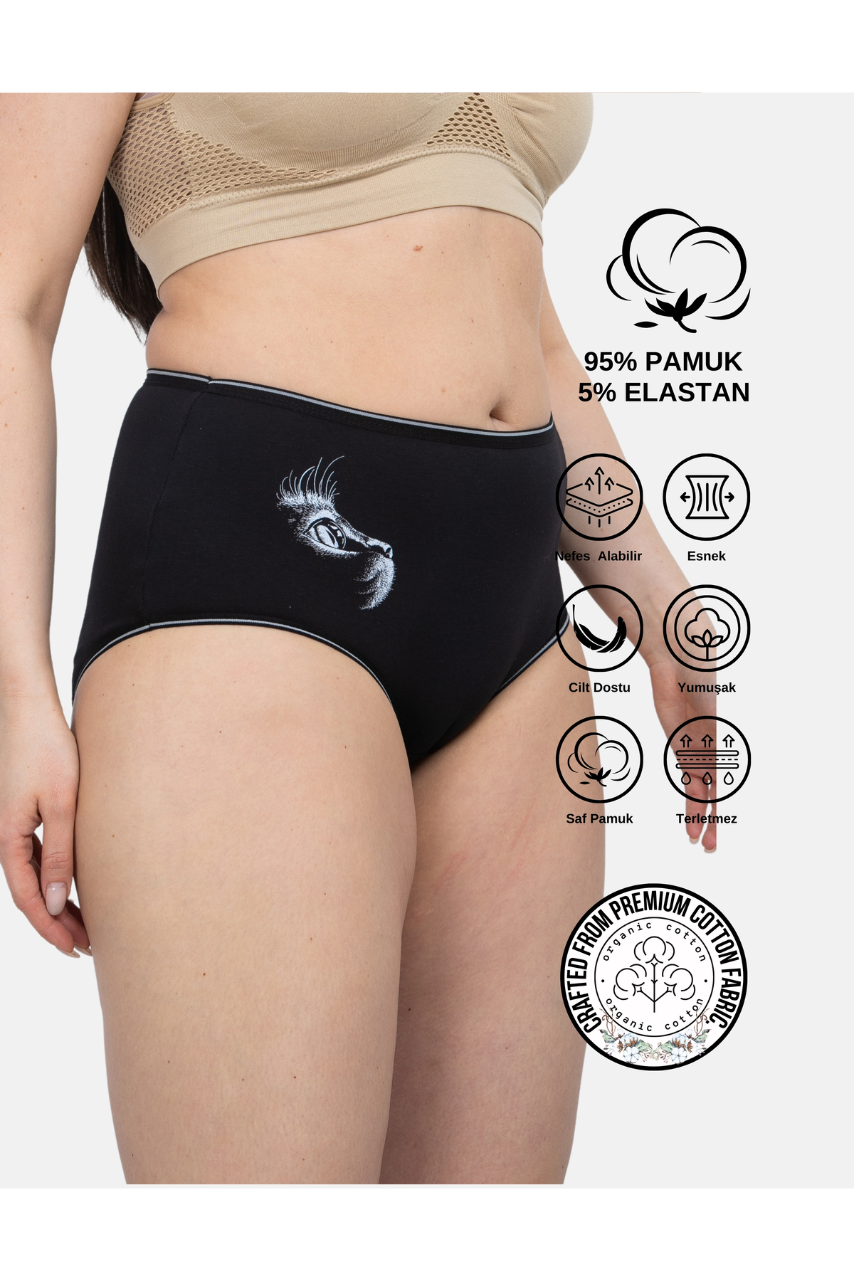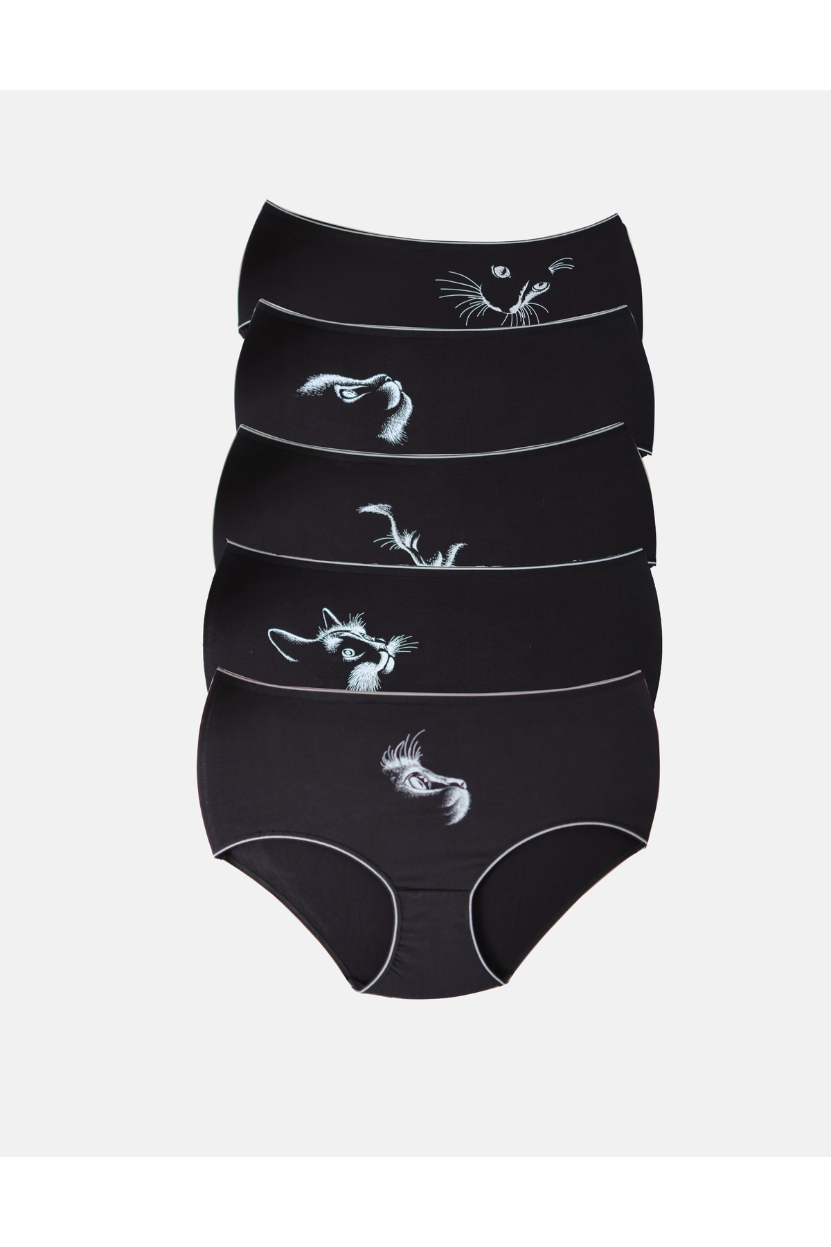 Package Includes: Women's Plus Size Panties Full Briefs 5 Black Cat Printed Panties in 1 Pack